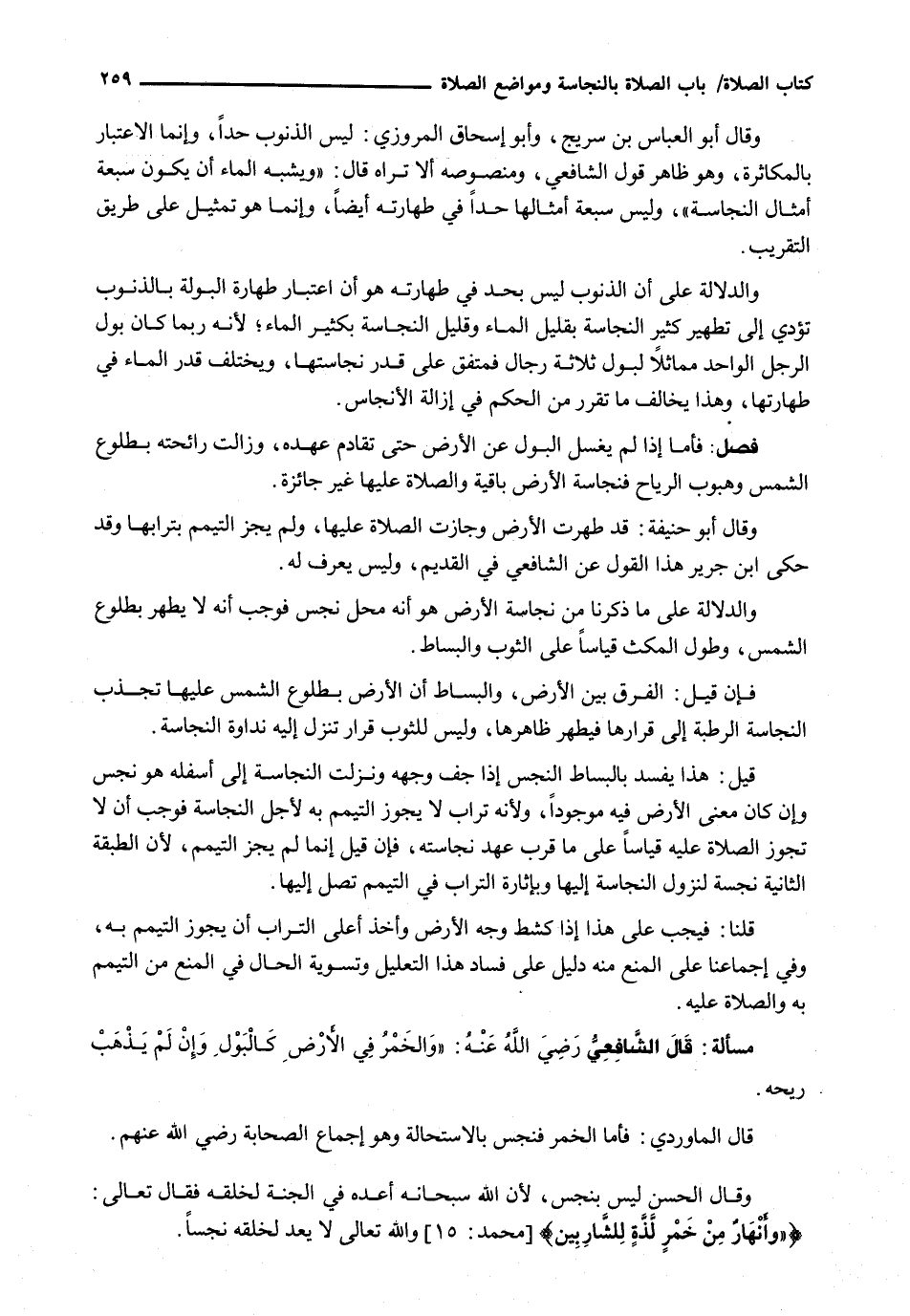 : قال الشافعي رضي الله عنه: " وَالْخَمْرُ فِي الْأَرْضِ كَالْبَوْلِ وَإِنْ لَمْ يَذْهَبْ رِيحُهُ "