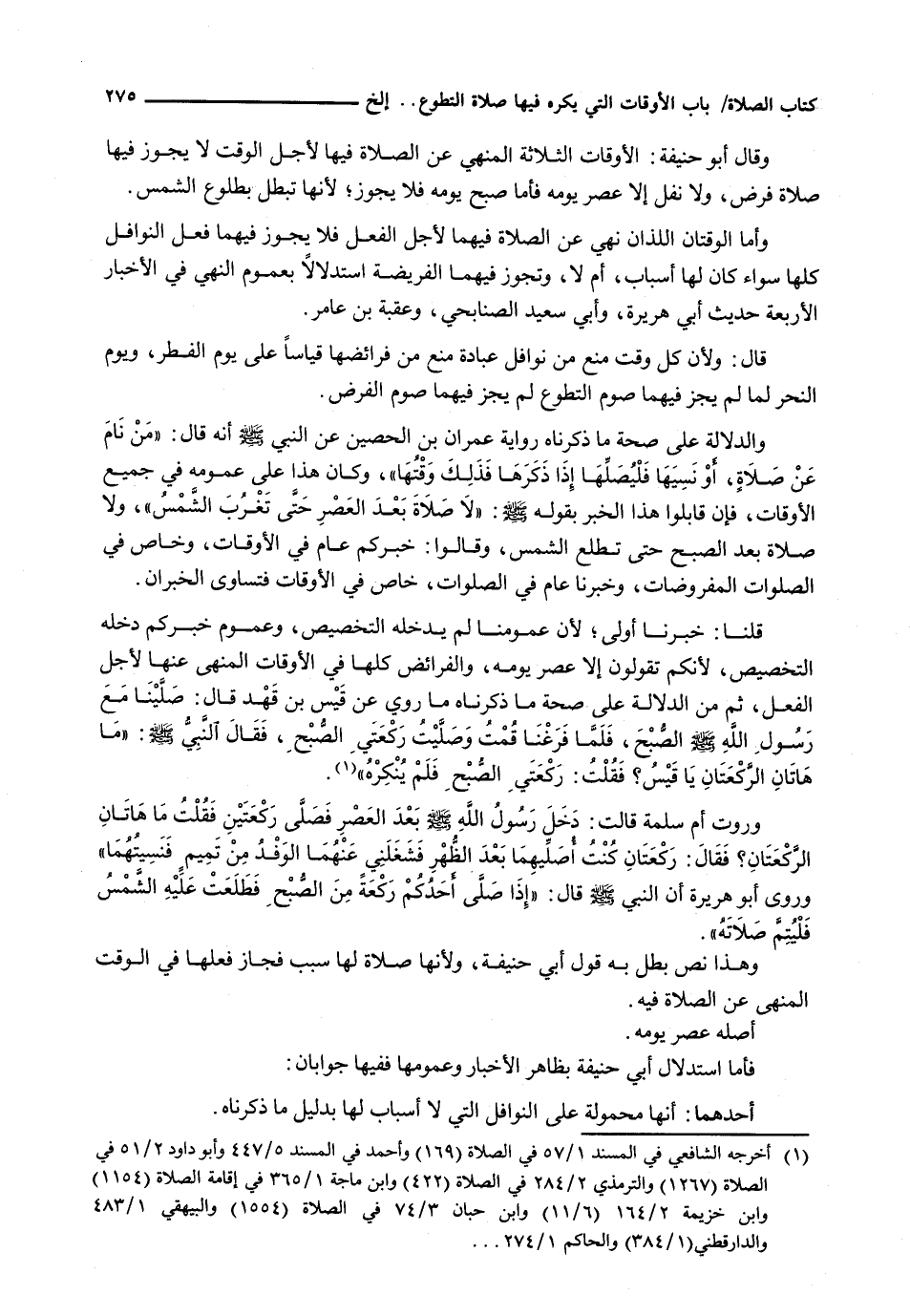 وَأَمَّا الْوَقْتَانِ اللَّذَانِ نُهِيَ عَنِ الصَّلَاةِ فِيهِمَا لِأَجْلِ الْفِعْلِ فَلَا يَجُوزُ فِيهِمَا فِعْلُ النَّوَافِلِ كُلِّهَا سَوَاءٌ كَانَ لَهَا أَسْبَابٌ، أَمْ لَا، وَتَجُوزُ فِيهِمَا الْفَرِيضَةُ اسْتِدْلَالًا بِعُمُومِ النَّهْيِ فِي الْأَخْبَارِ الْأَرْبَعَةِ حَدِيثِ أَبِي هُرَيْرَةَ، وَأَبِي سَعِيدٍ الصُّنَابِحِيِّ، وَعُقْبَةَ بْنِ عَامِرٍ