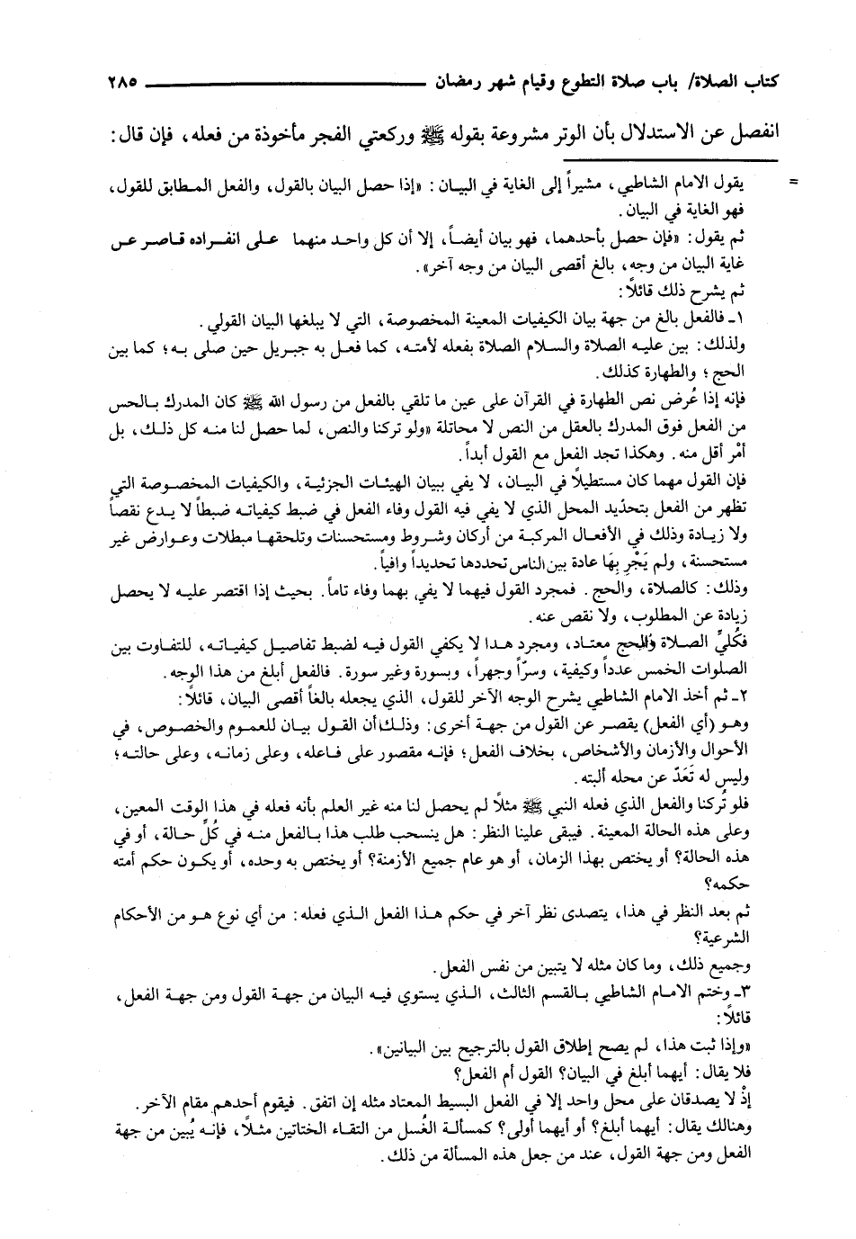 انْفَصَلَ عَنِ الِاسْتِدْلَالِ بِأَنَّ الْوِتْرَ مَشْرُوعَةٌ بِقَوْلِهِ - صَلَّى اللَّهُ عَلَيْهِ وَسَلَّم َ - وَرَكْعَتَيِ الْفَجْرِ مَأْخُوذَةٌ مِنْ فِعْلِهِ، فَإِنْ قَالَ: