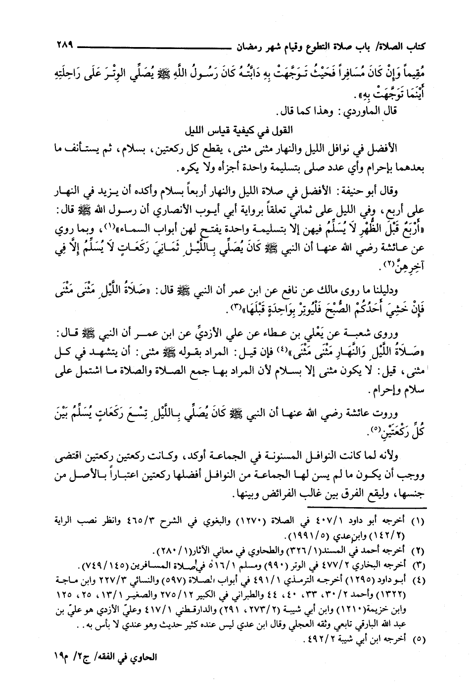 الْأَفْضَلُ فِي نَوَافِلِ اللَّيْلِ وَالنَّهَارِ مَثْنَى مَثْنَى، يَقْطَعُ كُلَّ رَكْعَتَيْنِ، بِسَلَامٍ، ثُمَّ يَسْتَأْنِفُ مَا بَعْدَهُمَا بِإِحْرَامٍ وَأَيَّ عَدَدٍ صَلَّى بِتَسْلِيمَةٍ وَاحِدَةٍ أَجْزَأَهُ وَلَا يُكْرَهُ