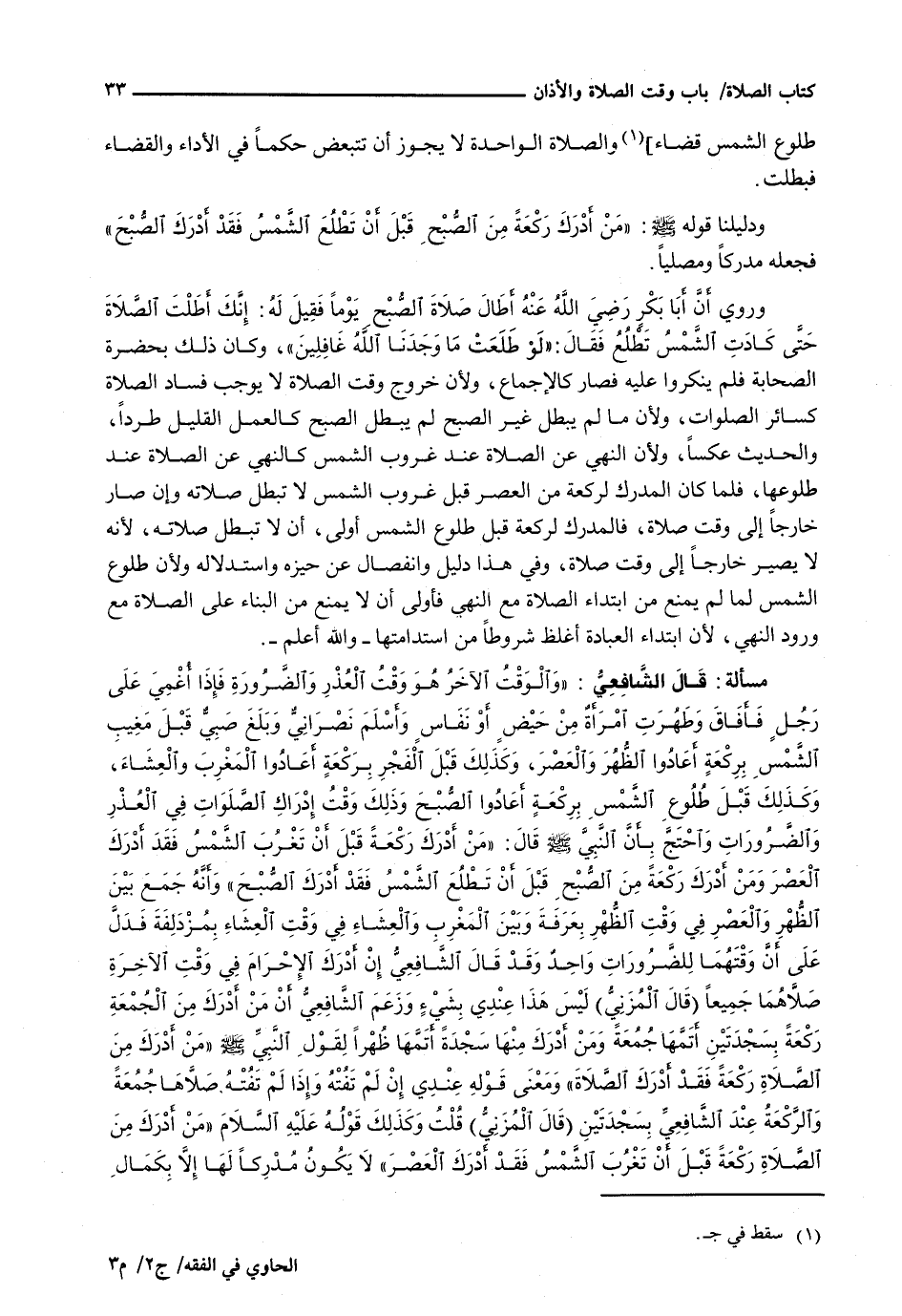 : قال الشافعي: " وَالْوَقْتُ الْآخَرُ هُوَ وَقْتُ الْعُذْرِ وَالضَّرُورَةِ فَإِذَا أُغْمِيَ عَلَى رَجُلٍ فَأَفَاقَ وَطَهُرَتِ امْرَأَةٌ مِنْ حيض أو نفاس وأسلم نصراني وبلغ صبي قبل مغيب الشمس بركعة أعادوا الظهر والعصر، وكذلك قبل الفجر بركعة أعادوا المغرب والعشاء، وكذلك قبل طلوع الشمس بركعة أعادوا الصبح وذلك وقت إدراك الصلوات في العذر والضرورات وَاحْتَجَّ بِأَنَّ النَّبِيَّ - صَلَّى اللَّهُ عَلَيْهِ وَسَلَّم َ - قال: " من أدرك ركعة قَبْلَ أَنْ تَغْرُبَ الشَّمْسُ فَقَدْ أَدْرَكَ الْعَصْرَ ومن أَدْرَكَ رَكْعَةً مِنَ الصُّبْحِ قَبْلَ أَنْ تَطْلُعَ الشمس فقد أدرك الصبح " وأنه جمع بين الظهر والعصر في وقت الظهر بعرفة وبين المغرب والعشاء في وقت العشاء بمزدلفة فدل على أن وقتهما للضرورات واحد وقد قال الشافعي إن أدرك الإحرام في وقت الآخرة صلاهما جميعا (قال المزني) ليس هذا عندي بشيء وزعم الشافعي أن من أدرك من الجمعة ركعة بسجدتين أتمها جمعة ومن أدرك منها سجدة أتمها ظهرا لقول النبي - صَلَّى اللَّهُ عَلَيْهِ وَسَلَّم َ - " من أدرك من الصلاة ركعة فقد أدرك الصلاة " ومعنى قوله عندي إن لم تفته وإذا لم تفته صلاها جمعة والركعة عند الشافعي بسجدتين (قال المزني) قلت وكذلك قوله عليه السلام " من أدرك من الصلاة ركعة قَبْلَ أَنْ تَغْرُبَ الشَّمْسُ فَقَدْ أَدْرَكَ الْعَصْرَ " لا يكون مدركا لها إلا بكمال