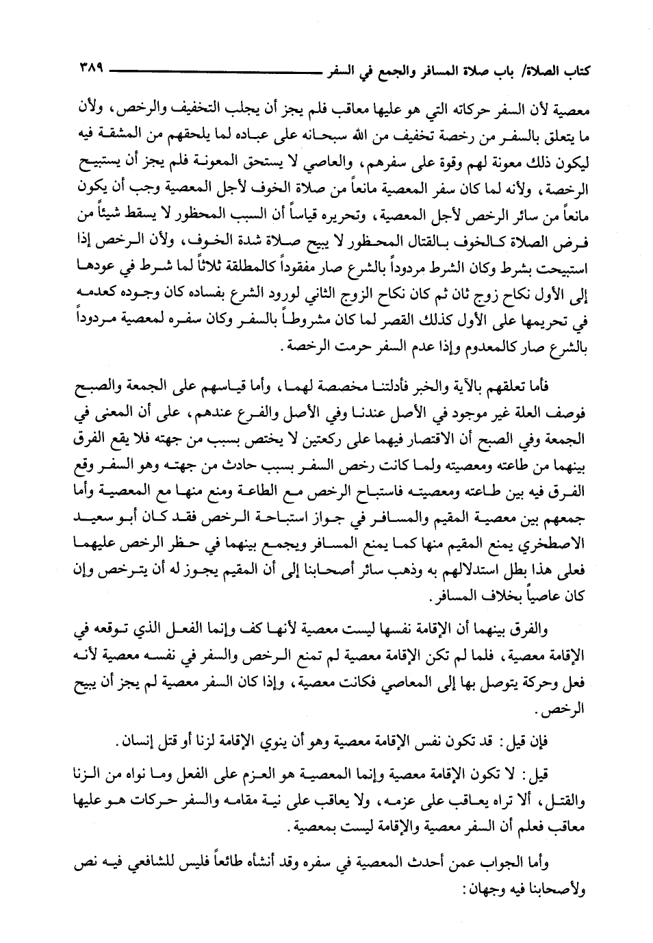 قِيلَ: لَا تكون الإقامة معصية وإنما المعصية هو الْعَزْمُ عَلَى الْفِعْلِ وَمَا نَوَاهُ مِنَ الزنا وَالْقَتْلِ، أَلَا تَرَاهُ يُعَاقَبُ عَلَى عَزْمِهِ، وَلَا يُعَاقَبُ عَلَى نِيَّةِ مُقَامِهِ وَالسَّفَرُ حَرَكَاتٌ هُوَ عَلَيْهَا مُعَاقِبٌ فَعُلِمَ أَنَّ السَّفَرَ مَعْصِيَةٌ وَالْإِقَامَةَ لَيْسَتْ بِمَعْصِيَةٍ