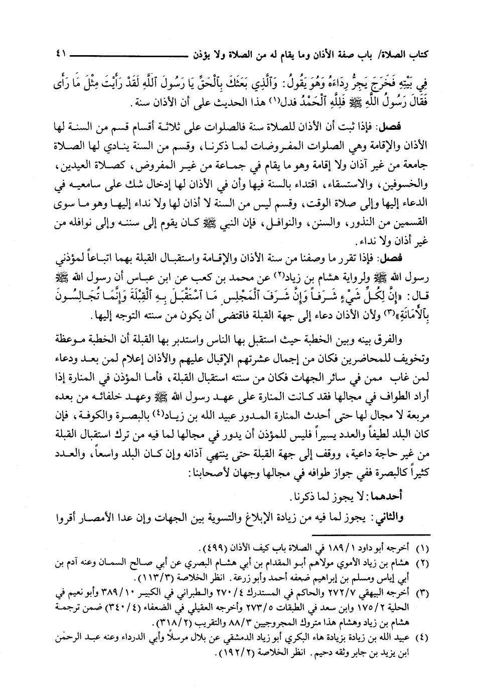 : فَإِذَا تَقَرَّرَ مَا وَصَفْنَا مِنْ سُنَّةِ الْأَذَانِ وَالْإِقَامَةِ وَاسْتِقْبَالِ الْقِبْلَةِ بِهِمَا اتِّبَاعًا لِمُؤَذِّنِي رَسُولِ اللَّهِ - صَلَّى اللَّهُ عَلَيْهِ وَسَلَّم َ - وَلِرِوَايَةِ هِشَامِ بْنِ زِيَادٍ عَنْ مُحَمَّدِ بْنِ كَعْبٍ عَنِ ابْنِ عَبَّاسٍ أَنَّ رَسُولَ اللَّهِ - صَلَّى اللَّهُ عَلَيْهِ وَسَلَّم َ - قَالَ: " إِنَّ لِكُلِّ شَيْءٍ شَرَفًا وَإِنَّ شَرَفَ الْمَجْلِسِ مَا اسْتَقْبَلَ بِهِ الْقِبْلَةَ وَإِنَّمَا تُجَالِسُونَ بِالْأَمَانَةِ " وَلِأَنَّ الْأَذَانَ دُعَاءٌ إِلَى جِهَةِ الْقِبْلَةِ فَاقْتَضَى أَنْ يَكُونَ مِنْ سُنَّتِهِ التَّوَجُّهُ إِلَيْهَا.