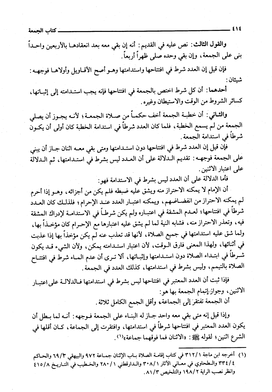 أَنَّ الْجُمْعَةَ تَفْتَقِرُ إِلَى الْجَمَاعَةِ، وَأَقَلُّ الْجَمْعِ الْكَامِلِ ثَلَاثَةٌ.