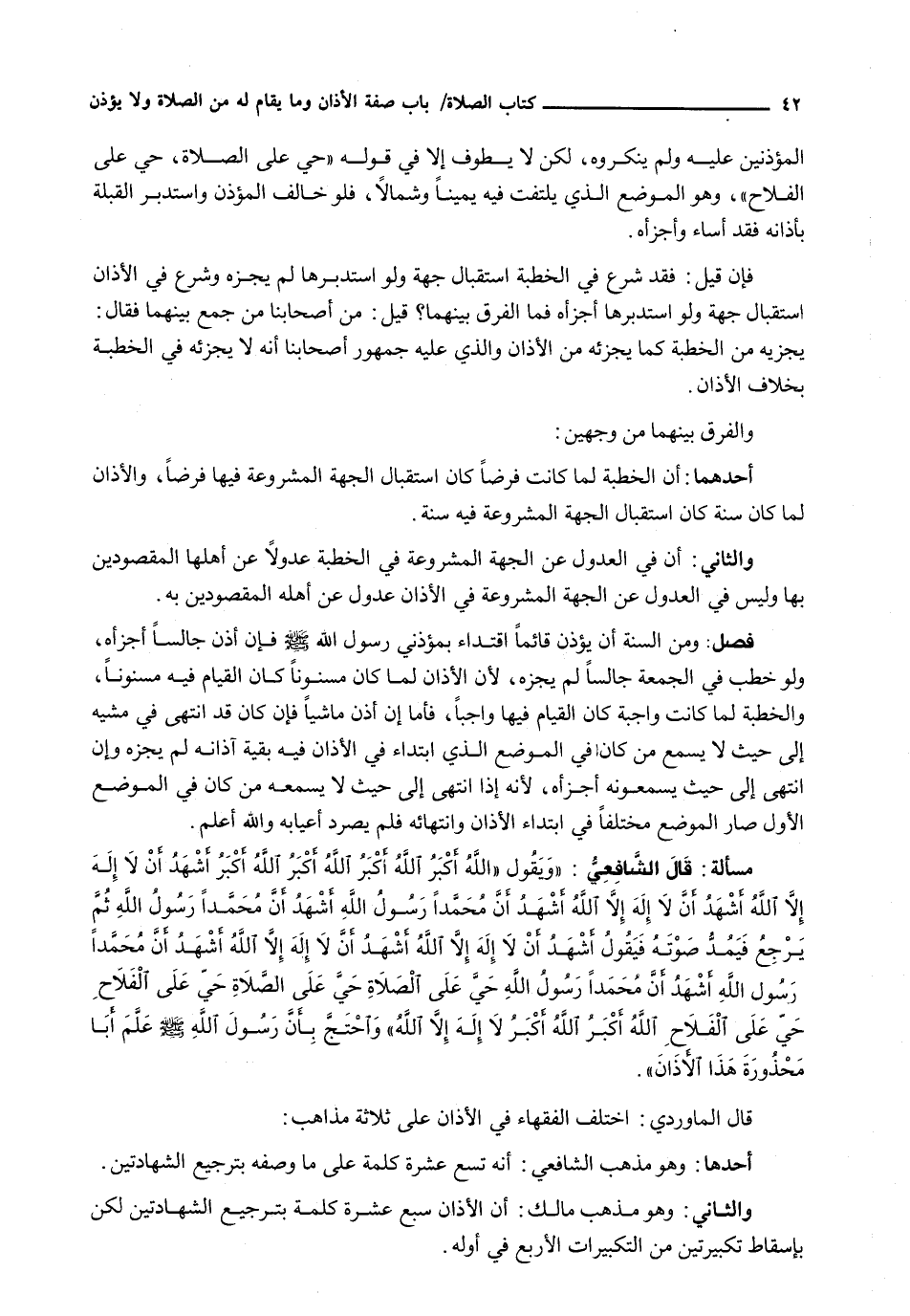 قَالَ الْمَاوَرْدِيُّ: اخْتَلَفَ الْفُقَهَاءُ فِي الْأَذَانِ عَلَى ثَلَاثَةِ مَذَاهِبَ: