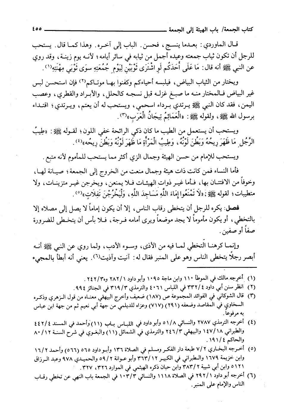 قال الماوردي: بعدما ينسج، فحسن. الباب إلى آخره وَهَذَا كَمَا قَالَ. يُسْتَحَبُّ لِلرَّجُلِ أَنْ تَكُونَ ثِيَابُ جُمْعَتِهِ وَعِيدِهِ أَجْمَلَ مِنْ ثِيَابِهِ فِي سَائِرِ أَيَّامِهِ، لِأَنَّهُ يَوْمُ زِينَةٍ، وَقَدْ رُوِيَ عَنِ النَّبِيِّ - صَلَّى اللَّهُ عَلَيْهِ وَسَلَّم َ - أَنَّهُ قَالَ: مَا عَلَى أَحَدِكُمْ لَوِ اشْتَرَى ثَوْبَيْنِ لِيَوْمِ جُمْعَتِهِ سِوَى ثَوْبَيْ مَهِنَتِهِ.