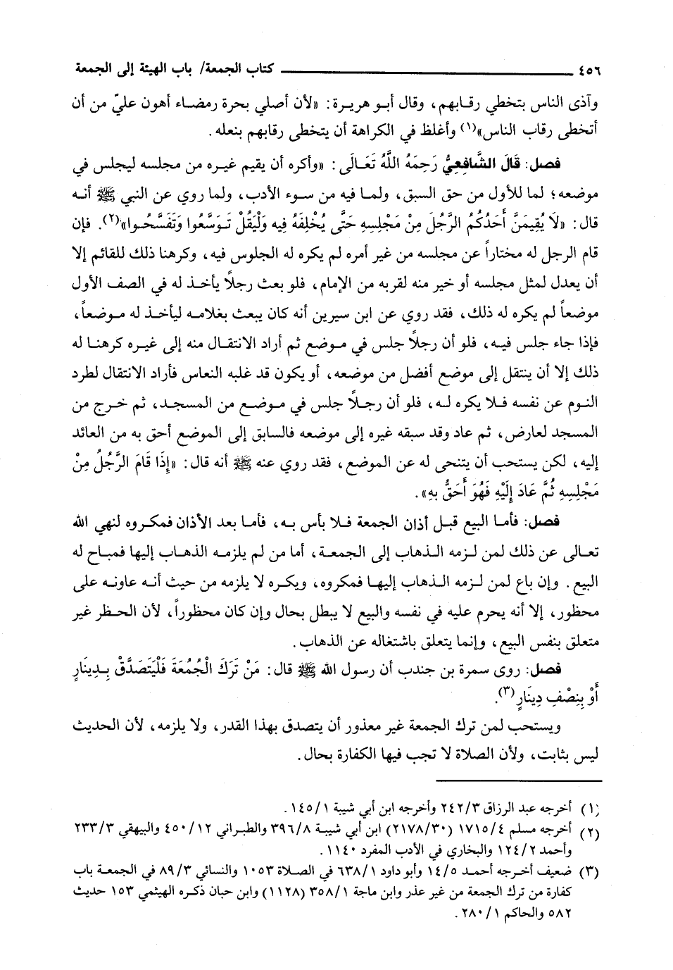 وَآذَى النَّاسَ بِتَخَطِّي رِقَابِهِمْ، وَقَالَ أَبُو هُرَيْرَةَ: " لَأَنْ أُصَلِّيَ بِحَرَّةٍ رَمْضَاءَ أَهْوَنُ عَلَيَّ مِنْ أَنْ أَتَخَطَّى رِقَابَ النَّاسِ " وَأَغْلَظُ فِي الْكَرَاهَةِ أَنْ يَتَخَطَّى رِقَابَهُمْ بِنَعْلِهِ.