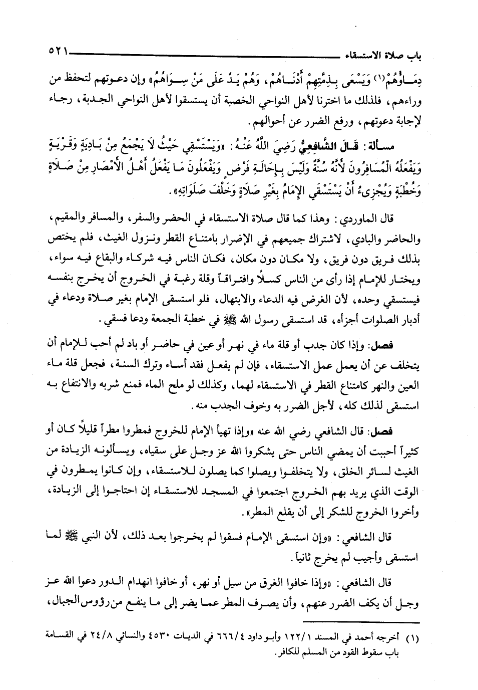 دِمَاؤُهُمْ وَيَسْعَى بِذِمَّتِهِمْ أَدْنَاهُمْ، وَهُمْ يَدٌ عَلَى مَنْ سِوَاهُمْ " وَإِنَّ دَعْوَتَهُمْ لَتَحْفَظُ مَنْ وَرَاءَهُمْ، فَلِذَلِكَ مَا اخْتَرْنَا لِأَهْلِ النَّوَاحِي الْخِصْبَةِ أَنْ يَسْتَسْقُوا لِأَهْلِ النَّوَاحِي الْجَدْبَةِ، رَجَاءً لِإِجَابَةِ دَعْوَتِهِمْ، ورفع الضرر عن أحوالهم.