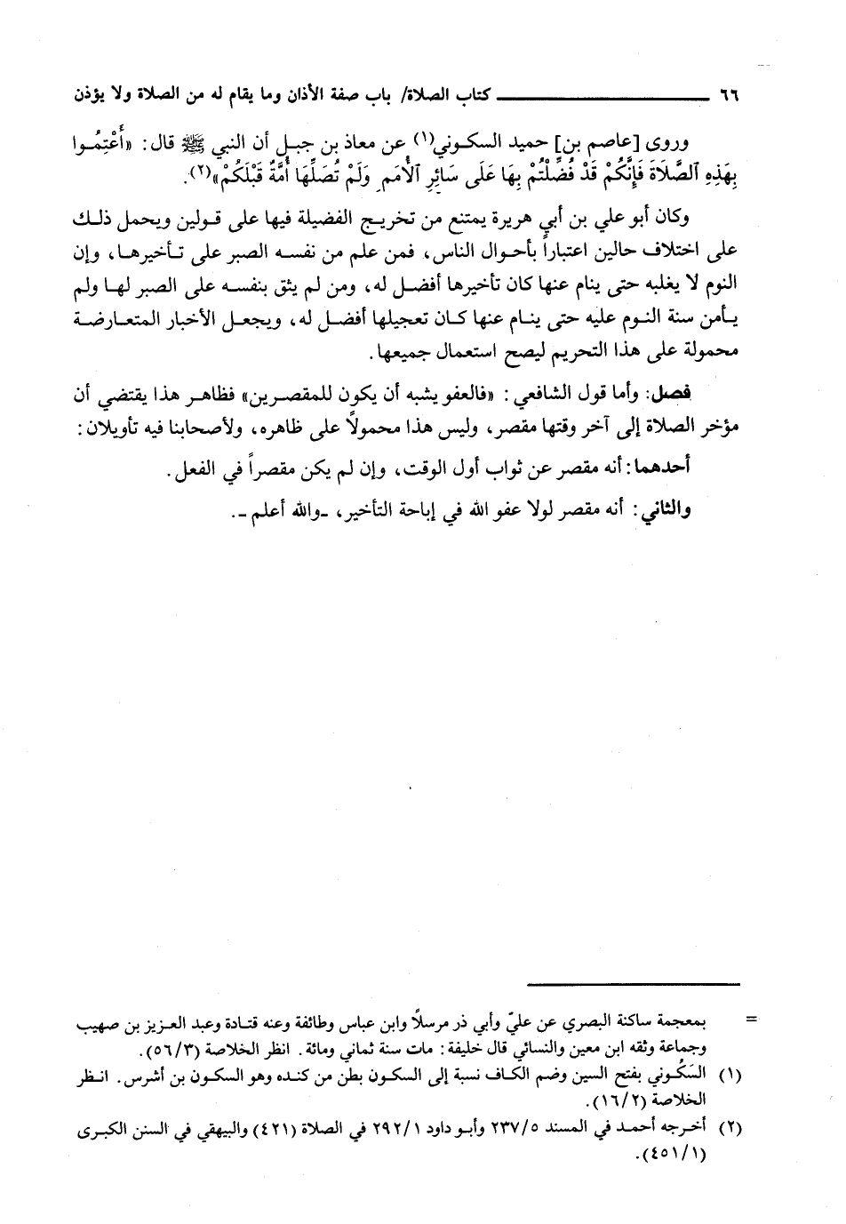 : وَأَمَّا قَوْلُ الشَّافِعِيِّ: (فَالْعَفْوُ يُشْبِهُ أَنْ يَكُونَ لِلْمُقَصِّرِينَ) فَظَاهِرُ هَذَا يَقْتَضِي أَنَّ مُؤَخِّرَ الصَّلَاةِ إِلَى آخِرِ وَقْتِهَا مُقَصِّرٌ، وَلَيْسَ هَذَا مَحْمُولًا عَلَى ظَاهِرِهِ، وَلِأَصْحَابِنَا فِيهِ تَأْوِيلَانِ: