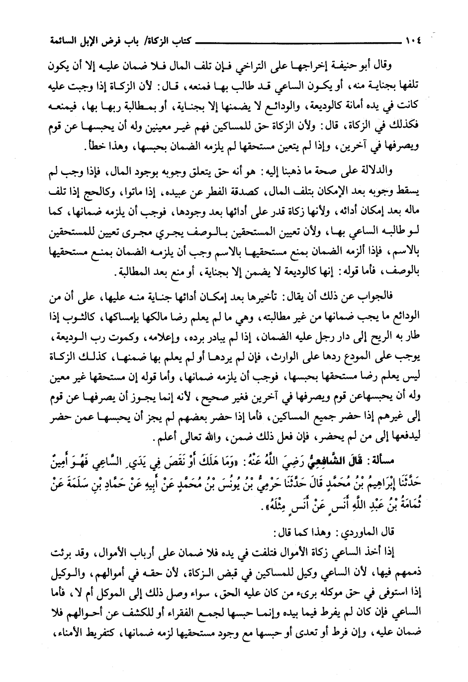 مَسْأَلَةٌ: قَالَ الشافعي رضي الله عنه: " وما هلك أو نقص في يدي الساعي فهو أمين حدثنا إبراهيم بن محمد قال حدثنا حرمي بن يونس بن محمد عن أبيه عن حماد بن سلمة عن ثمامة بن عبد الله أنس عن أنس مِثْلِهِ ".
