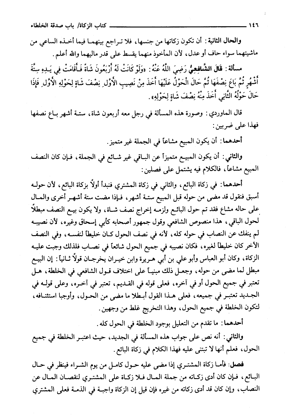 قَالَ الْمَاوَرْدِيُّ: وَصُورَةُ هَذِهِ الْمَسْأَلَةِ فِي رَجُلٍ مَعَهُ أَرْبَعُونَ شَاةً، سِتَّةَ أَشْهُرٍ بَاعَ نَصِفَهَا فَهَذَا عَلَى ضَرْبَيْنِ:
