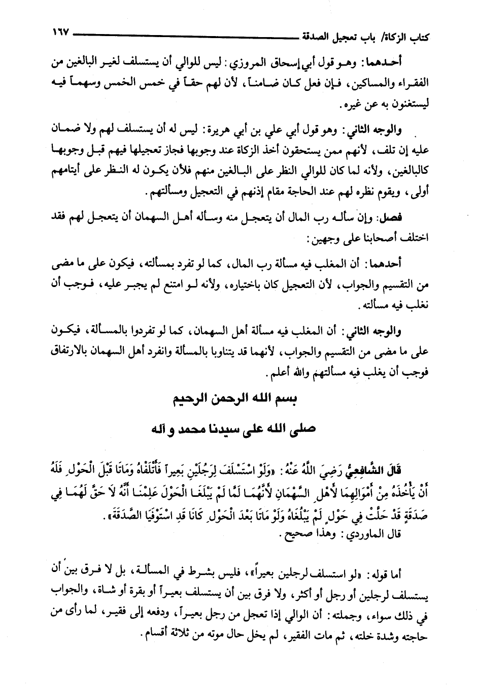 : وَإِنْ سَأَلَهُ رَبُّ الْمَالِ أَنْ يَتَعَجَّلَ مِنْهُ وَسَأَلَهُ أَهْلُ السُّهْمَانِ أَنْ يَتَعَجَّلَ لَهُمْ فَقَدِ اخْتَلَفَ أَصْحَابُنَا عَلَى وَجْهَيْنِ: