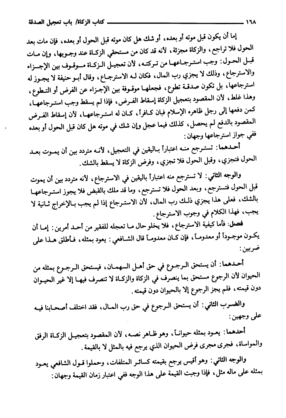 وَالْوَجْهُ الثَّانِي: لَا تُسْتَرْجَعُ مِنْهُ اعْتِبَارًا بِالْيَقِينِ فِي الِاسْتِرْجَاعِ، لِأَنَّهُ مُتَرَدِّدٌ بَيْنَ أَنْ يَمُوتَ قَبْلَ الْحَوْلِ فَتُسْتَرْجَعُ، وَبَعْدَ الْحَوْلِ فَلَا تُسْتَرْجَعُ، وَمَا قَدْ ملك بالقبض فلا يجوز استرجاعها بالشك، فعلى هذا يجزي ذلك رب المال، لأنه الاسترجاع إذا لم يجب بالإخراج ثانية لا يَجِبْ، فَهَذَا الْكَلَامُ فِي وُجُوبِ الِاسْتِرْجَاعِ.