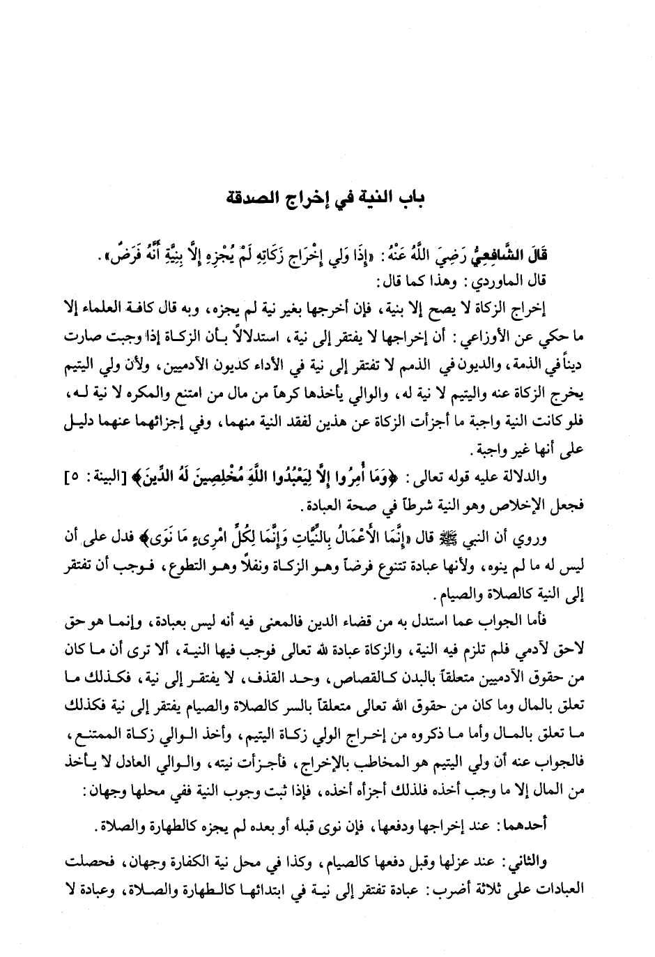 قال الشافعي رضي الله عنه: " إِذَا وَلِيَ إِخْرَاجَ زَكَاتِهِ لَمْ يُجْزِهِ إِلَّا بِنِيَّةِ أَنَّهُ فَرْضٌ ".