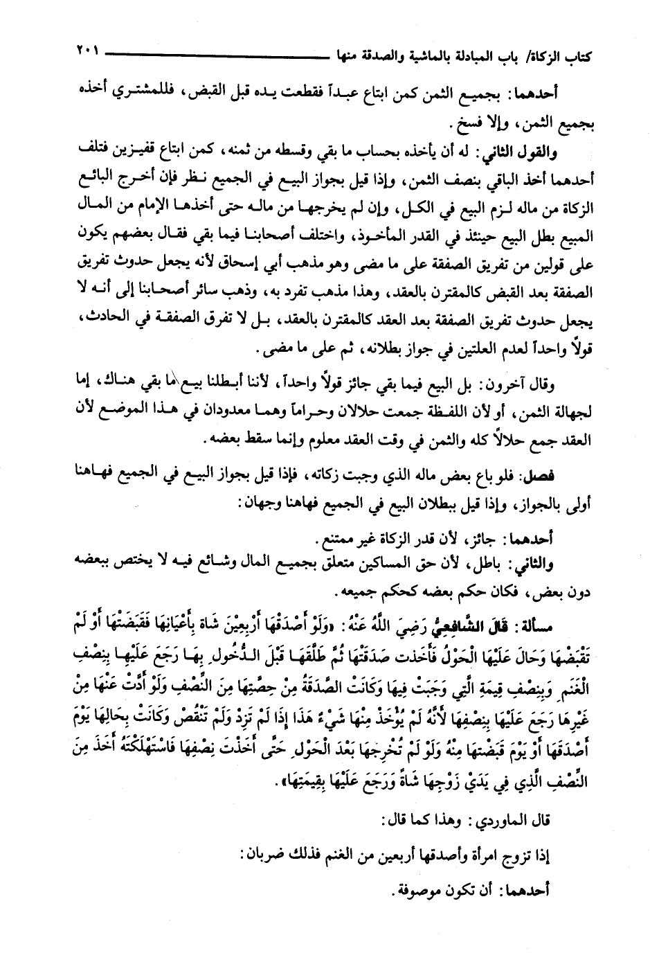 : فَلَوْ بَاعَ بَعْضَ مَالِهِ الَّذِي وَجَبَتْ زَكَاتُهُ، فَإِذَا قِيلَ بِجَوَازِ الْبَيْعِ في الجميع فهاهنا أَوْلَى بِالْجَوَازِ، وَإِذَا قِيلَ بِبُطْلَانِ الْبَيْعِ فِي الجميع فهاهنا وَجْهَانِ: