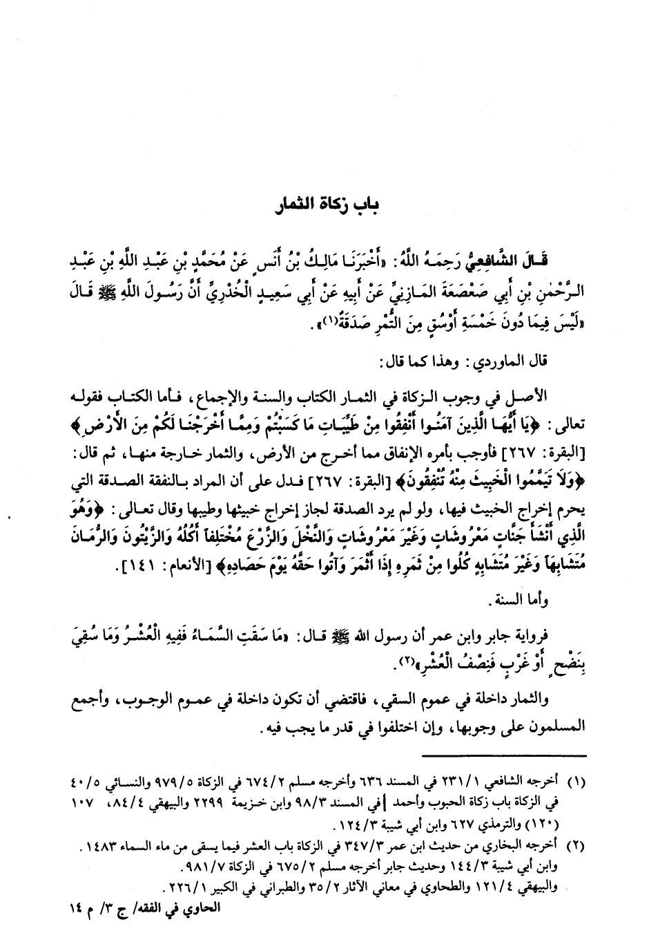 قَالَ الشَّافِعِيُّ رَحِمَهُ اللَّهُ: " أَخْبَرَنَا مَالِكُ بْنُ أَنَسٍ عَنْ مُحَمَّدِ بْنِ عَبْدِ اللَّهِ بْنِ عَبْدِ الرَّحْمَنِ بْنِ أَبِي صَعْصَعَةَ الْمَازِنِيِّ عَنِ أَبِيهِ عَنْ أَبِي سَعِيدٍ الْخُدْرِيِّ أَنَّ رَسُولَ اللَّهِ - صَلَّى اللَّهُ عَلَيْهِ وَسَلَّم َ - قَالَ " لَيْسَ فِيمَا دُونَ خَمْسَةِ أوسقٍ مِنَ التَّمْرِ صدقةٌ ".