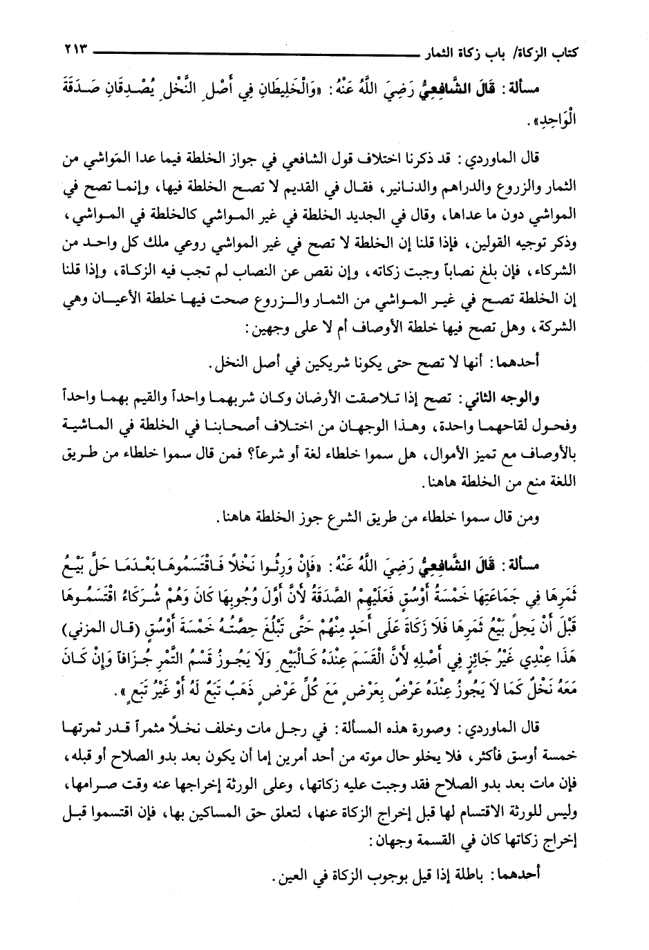 قال الشافعي رضي الله عنه: " فإن وَرِثُوا نَخْلًا فَاقْتَسَمُوهَا بَعْدَمَا حَلَّ بَيْعُ ثَمَرِهَا فِي جَمَاعَتِهَا خَمْسَةُ أَوْسُقٍ فَعَلَيْهِمُ الصَّدَقَةُ لِأَنَّ أول وجوبها كان وهم شركاء اقْتَسَمُوهَا قَبْلَ أَنْ يَحِلَّ بَيْعُ ثَمَرِهَا فَلَا زكاة على أحدٍ منهم حتى تبلغ حصته خمسة أوسق (قال المزني) هذا عندي غير جائز في أصله لأن القسم عنده كالبيع ولا يجوز قسم التمر جزافاً وإن كان معه نخلٌ كما لا يجوز عنده عرض بعرضٍ مع كل عرضٍ ذهبٌ تبعٌ له أو غير تبعٍ ".