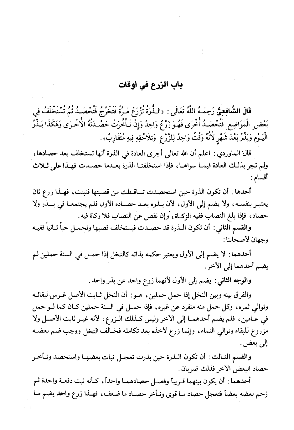 قال الشافعي رحمه الله تعالى: " الذرة تزرع مرة فتخرج فتحصد ثُمَّ تُسْتَخْلَفُ فِي بَعْضِ الْمَوَاضِعِ فَتُحْصَدُ أُخْرَى فَهُوَ زَرْعٌ واحدٌ وَإِنْ تَأَخَّرَتْ حَصَدَتُهُ الْأُخْرَى وهكذا بذر اليوم وبذر بعد شهرٍ لأنه وقتٌ واحدٌ للزرع وتلاحقه فيه متقاربٌ ".