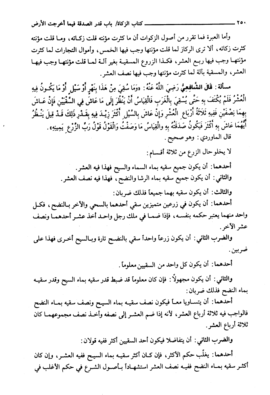 وَالضَّرْبُ الثَّانِي: أَنْ يَكُونَ زَرْعًا وَاحِدًا سُقِيَ بِالنَّضْحِ تَارَةً وَبِالسَّيْحِ أخرى فهذا على ضربي.