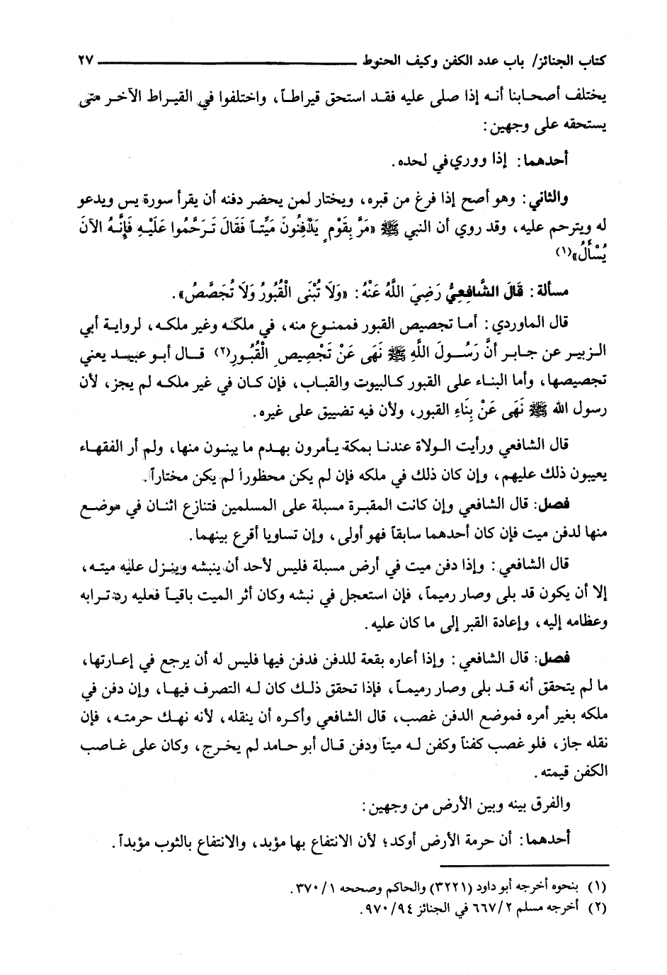قال الشافعي رضي الله عنه: " وَلَا تُبْنَى الْقُبُورُ وَلَا تُجَصَّصُ ".