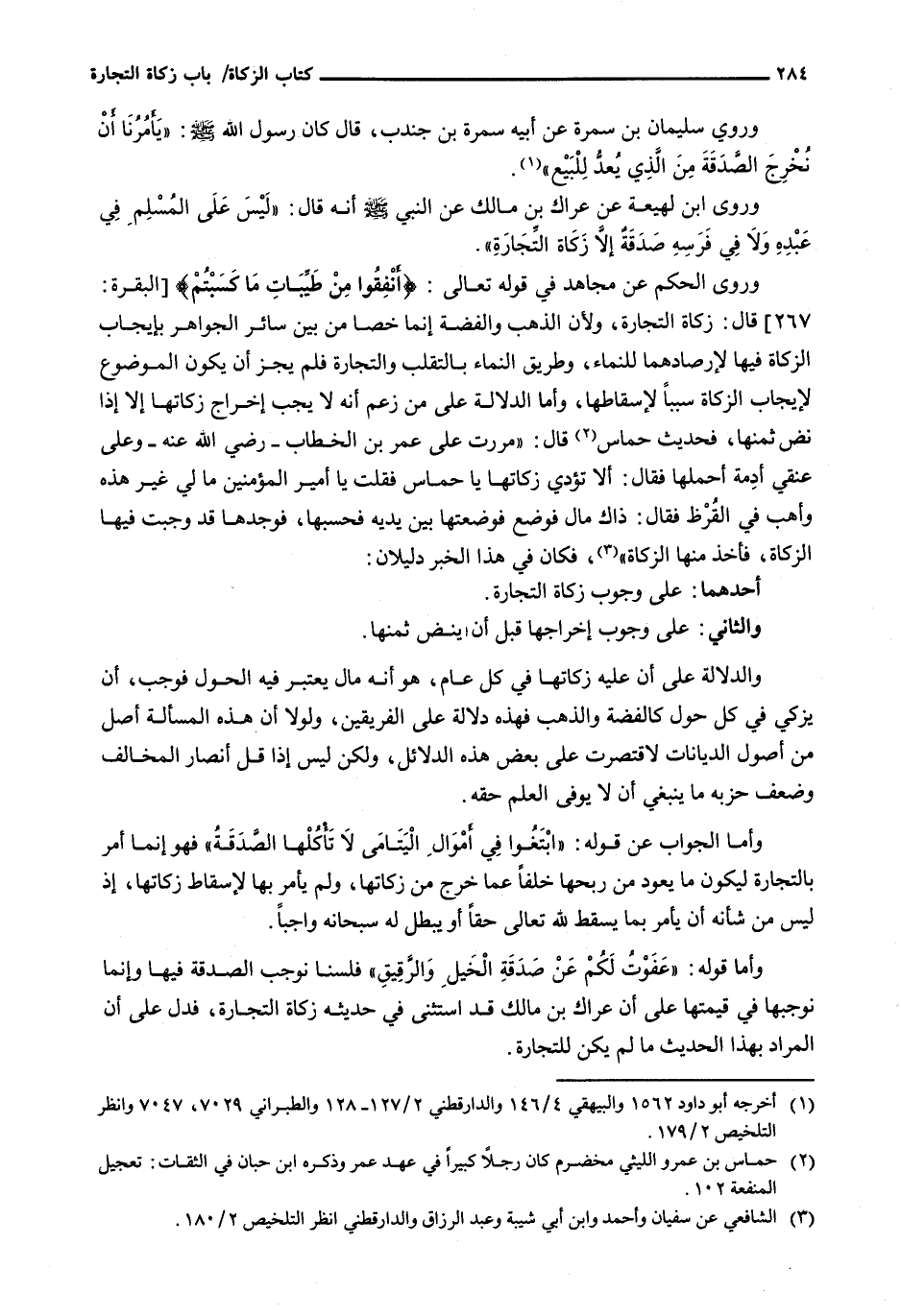 وَأَمَّا قَوْلُهُ: " عَفَوْتُ لَكُمْ عَنْ صَدَقَةِ الْخَيْلِ والرقيق " فلسنا نوجب الصدقة فيها وَإِنَّمَا نُوجِبُهَا فِي قِيمَتِهَا عَلَى أَنَّ عِرَاكَ بْنَ مَالِكٍ قَدِ اسْتَثْنَى فِي حَدِيثِهِ زَكَاةَ التِّجَارَةِ، فَدَلَّ عَلَى أَنَّ الْمُرَادَ بِهَذَا الْحَدِيثِ مَا لَمْ يَكُنْ لِلتِّجَارَةِ.