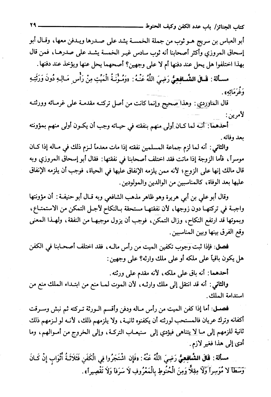 قال الشافعي رضي الله عنه: " فَإِنِ اشْتَجَرُوا فِي الْكَفَنِ فَثَلَاثَةُ أَثْوَابٍ إِنْ كَانَ وَسَطًا لَا مُوسِرًا وَلَا مُقِلًّا وَمِنَ الْحَنُوطِ بِالْمَعْرُوفِ لَا سَرَفًا وَلَا تَقْصِيرًا ".
