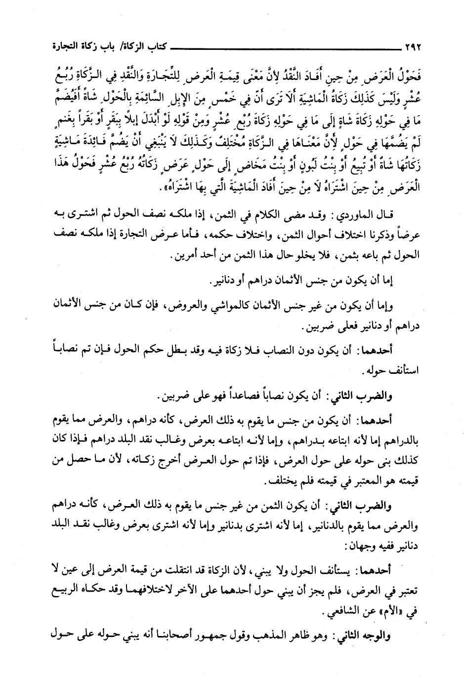 فحول العرض من حين أفاد النقد لأن معنى قيمة العرض للتجارة والنقد في الزكاة ربع عشر وليس كذلك زكاة الماشية ألا ترى أن في خمس من الإبل السائمة بالحول شاة أفيضم ما في حوله زكاة شاةٍ إلى ما حوله زكاة ربع عشر ومن قوله لو أبدل إبلاً ببقرٍ أو بقراً بغنمٍ لم يضمها في حول لأن معناها في الزكاة مختلف وكذلك لا ينبغي أن يضم فائدة ماشية زكاتها شاة أو تبيع أو بنت لبون أو بنت مخاضٍ إلى حول عرضٍ زكاته ربع عشر فحول هذا العرض من حين اشتراه لا من حين أفاد الماشية التي بها اشتراه ".