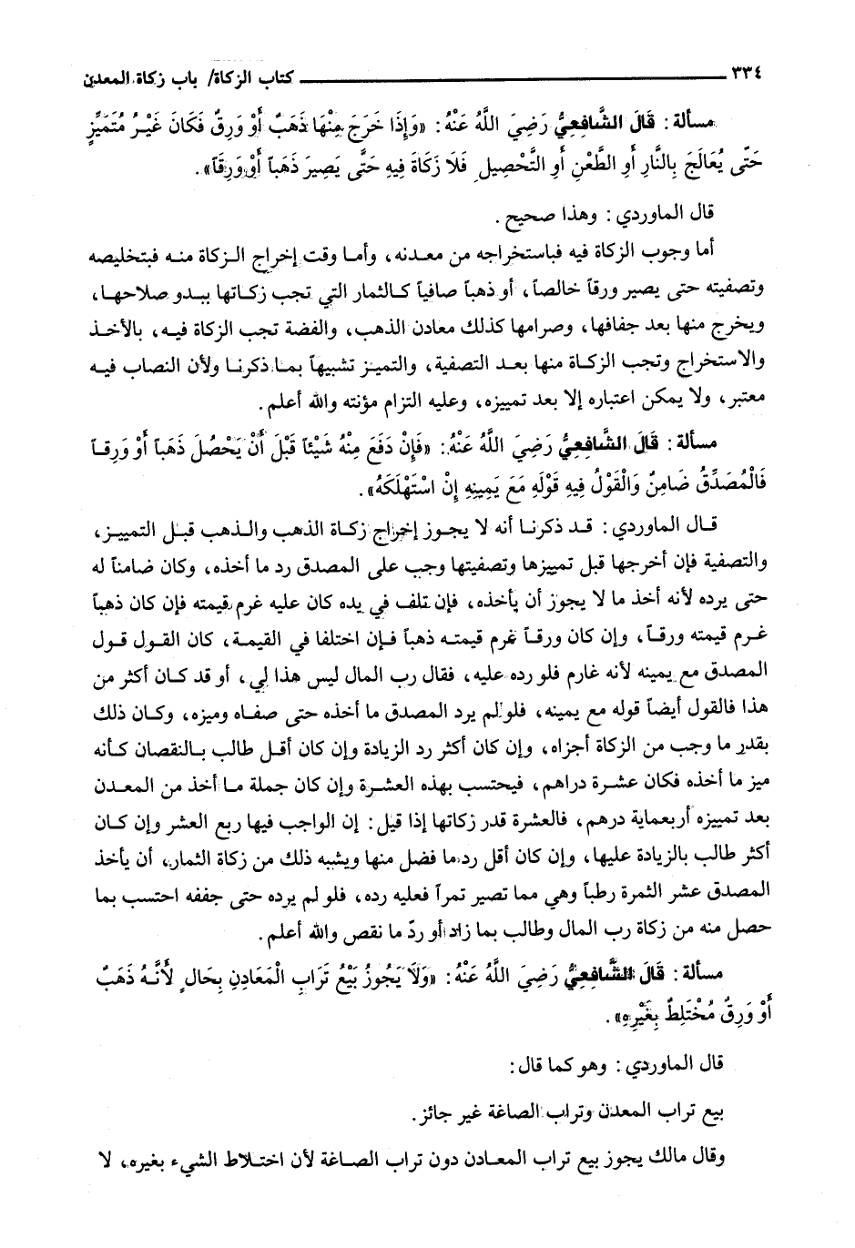 أَمَّا وُجُوبُ الزَّكَاةِ فِيهِ فَبِاسْتِخْرَاجِهِ مِنْ مَعْدِنِهِ، وَأَمَّا وَقْتَ إِخْرَاجِ الزَّكَاةِ مِنْهُ فَبِتَخْلِيصِهِ وَتَصْفِيَتِهِ حَتَّى يَصِيرَ وَرِقًا خَالِصًا، أَوْ ذَهَبًا صَافِيًا كَالثِّمَارِ الَّتِي تَجِبُ زَكَاتُهَا بِبُدُوِّ صَلَاحِهَا، وَيُخْرَجُ مِنْهَا بَعْدَ جَفَافِهَا، وَصِرَامِهَا كَذَلِكَ مَعَادِنُ الذَّهَبِ، وَالْفِضَّةِ تَجِبُ الزكاة فيه، بالأخذ والاستخراج وتجب الزكاة منها بعد التصفية، والتميز تَشْبِيهًا بِمَا ذَكَرْنَا وَلِأَنَّ النِّصَابَ فِيهِ مُعْتَبَرٌ، ولا يمكن اعتباره إلا بعد تمييزه، وَعَلَيْهِ الْتِزَامُ مُؤْنَتِهِ وَاللَّهُ أَعْلَمُ.