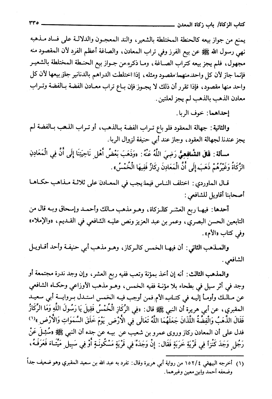 قال الشافعي رضي الله عنه: " وذهب بعض أهل ناحيتنا إلى أن في المعادن الزكاة وَغَيْرُهُمْ ذَهَبَ إِلَى أَنَّ الْمَعَادِنَ ركازٌ فَفِيهَا الْخُمُسُ ".