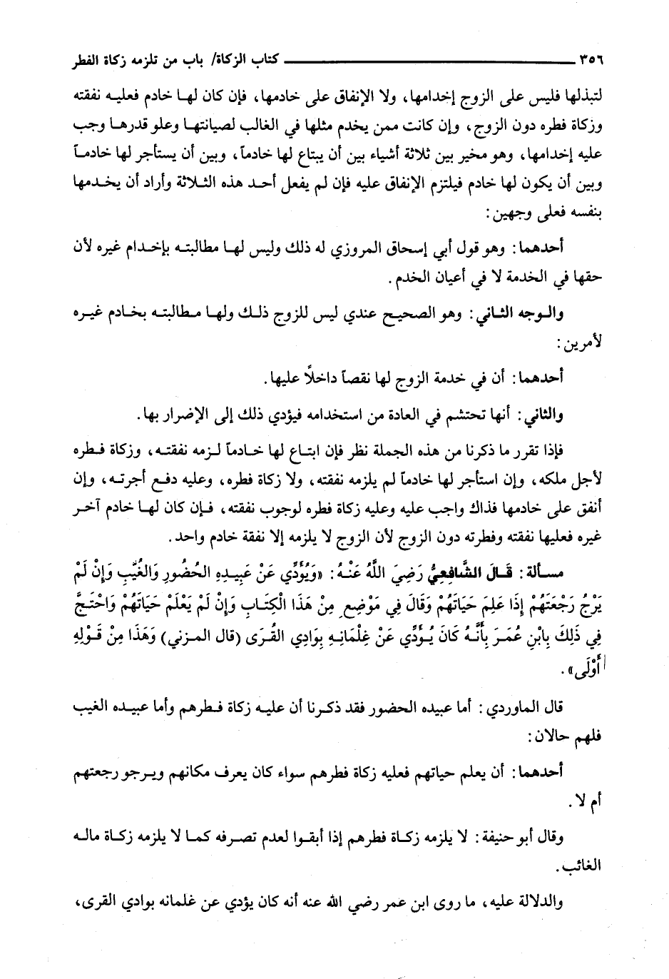 قال الشافعي رضي الله عنه: " وَيُؤَدِّي عَنْ عَبِيدِهِ الْحُضُورِ وَالْغُيَّبِ وَإِنْ لَمْ يَرْجُ رَجْعَتَهُمْ إِذَا عَلِمَ حَيَاتَهُمْ وَقَالَ فِي مَوْضِعٍ مِنْ هَذَا الْكِتَابِ وَإِنْ لَمْ يَعْلَمْ حياتهم واحتج في ذلك بابن عمر بأنه كان يؤدي عن غلمانه بوادي القرى (قال المزني) وهذا من قوله أولى ".