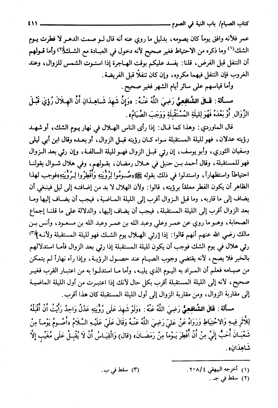 قال الشافعي رضي الله عنه: " وإن شهد شاهدان أن الهلال رؤي قَبْلَ الزَّوَالِ أَوْ بَعْدَهُ فَهُوَ لِلَّيْلَةِ الْمُسْتَقْبَلَةِ ووجب الصيام ".