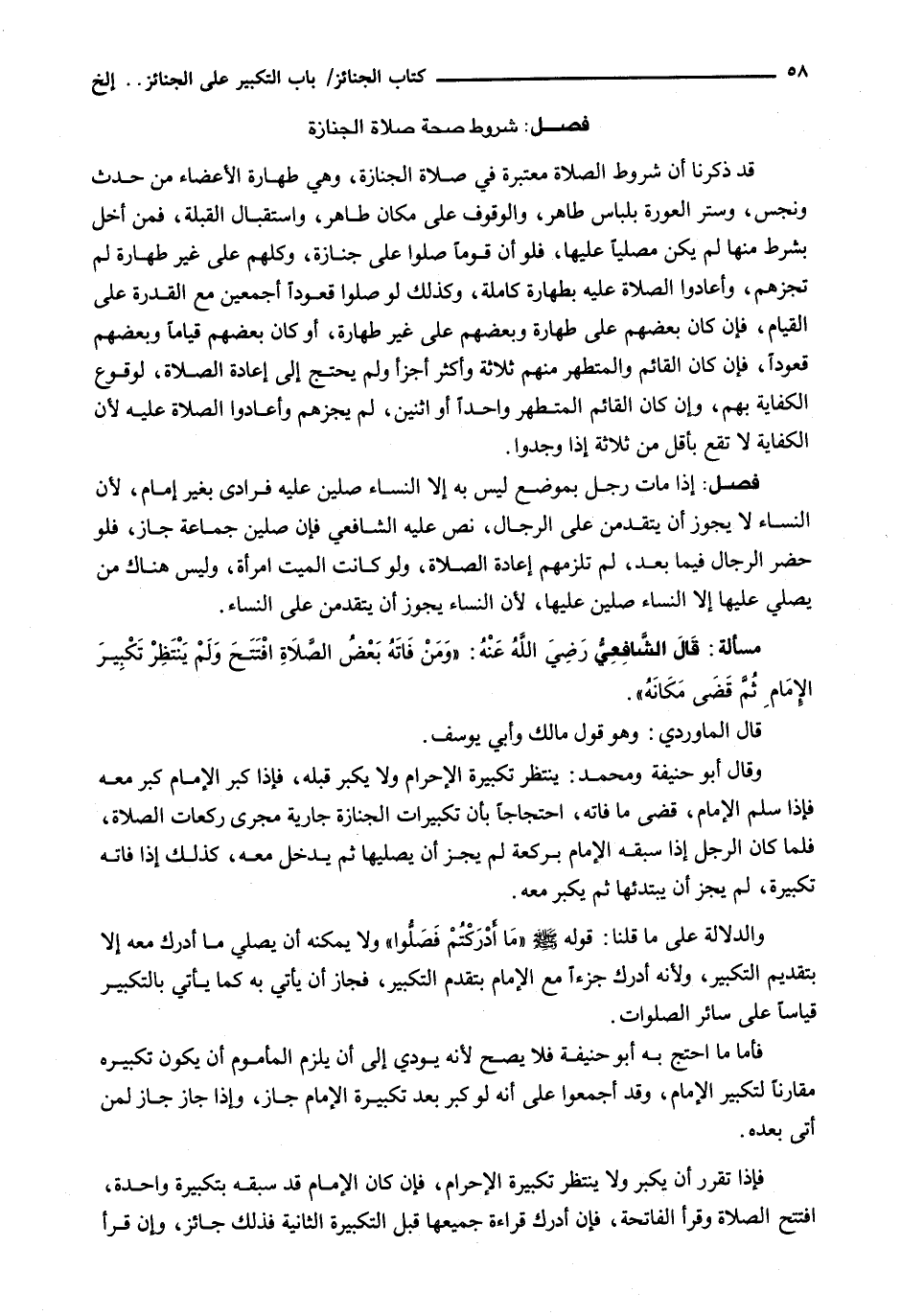 قَدْ ذَكَرْنَا أَنَّ شُرُوطَ الصَّلَاةِ مُعْتَبَرَةٌ فِي صَلَاةِ الْجِنَازَةِ، وَهِيَ طَهَارَةُ الْأَعْضَاءِ مِنْ حَدَثٍ وَنَجَسٍ، وَسِتْرُ الْعَوْرَةِ بِلِبَاسٍ طَاهِرٍ، وَالْوُقُوفُ عَلَى مَكَانٍ طَاهِرٍ، وَاسْتِقْبَالُ الْقِبْلَةِ، فَمَنْ أَخَلَّ بِشَرْطٍ مِنْهَا لَمْ يَكُنْ مُصَلِّيًا عَلَيْهَا، فَلَوْ أَنَّ قَوْمًا صَلَّوْا عَلَى جِنَازَةٍ، وَكُلُّهُمْ عَلَى غَيْرِ طَهَارَةٍ لَمْ تُجْزِهِمْ، وَأَعَادُوا الصَّلَاةَ عَلَيْهِ بِطَهَارَةٍ كَامِلَةٍ، وَكَذَلِكَ لَوْ صَلَّوْا قُعُودًا أَجْمَعِينَ مَعَ الْقُدْرَةِ عَلَى الْقِيَامِ، فَإِنْ كَانَ بَعْضُهُمْ عَلَى طَهَارَةٍ وَبَعْضُهُمْ عَلَى غَيْرِ طَهَارَةٍ، أَوْ كَانَ بَعْضُهُمْ قِيَامًا وَبَعْضُهُمْ قُعُودًا، فَإِنْ كَانَ الْقَائِمُ وَالْمُتَطَهِّرُ مِنْهُمْ ثَلَاثَةً وَأَكْثَرَ أَجْزَأَ وَلَمْ يُحْتَجْ إِلَى إِعَادَةِ الصَّلَاةِ، لِوُقُوعِ الْكِفَايَةِ بِهِمْ، وَإِنْ كَانَ الْقَائِمُ الْمُتَطَهِّرُ وَاحِدًا أَوِ اثْنَيْنِ، لَمْ يَجْزِهِمْ وَأَعَادُوا الصَّلَاةَ عَلَيْهِ لِأَنَّ الْكِفَايَةَ لَا تَقَعُ بِأَقَلَّ مِنْ ثَلَاثَةٍ إِذَا وُجِدُوا.