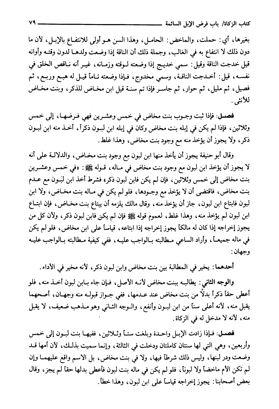 : فَإِذَا ثَبَتَ وُجُوبُ بِنْتِ مَخَاضٍ فِي خَمْسٍ وَعِشْرِينَ فَهِيَ فَرْضُهَا، إِلَى خَمْسٍ وَثَلَاثِينَ، فإذا لَمْ يَكُنْ فِي إِبِلِهِ بِنْتُ مَخَاضٍ وَكَانَ في إبله ابن لبون ذكراً، أُخِذَ مِنْهُ ابْنُ لَبُونٍ ذَكَرٌ، وَلَا يَجُوزُ أَنْ يُؤْخَذَ مِنْهُ مَعَ وُجُودِ بِنْتِ مَخَاضٍ، وهذا غلط.