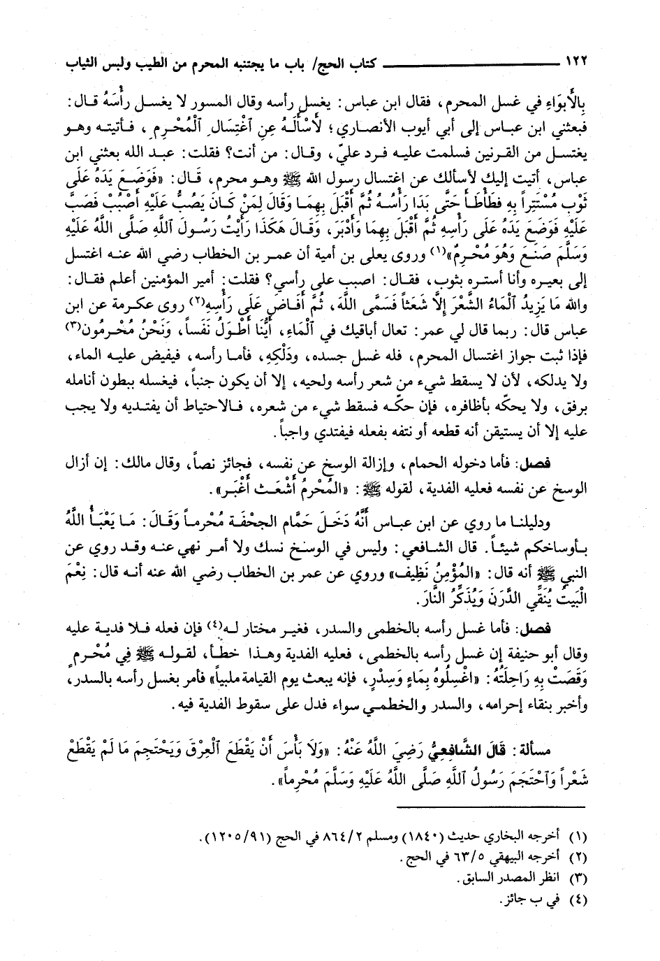 بِالْأَبْوَاءِ فِي غَسْلِ الْمُحْرِمِ، فَقَالَ ابْنُ عَبَّاسٍ: يَغْسِلُ رَأْسَهُ وَقَالَ الْمِسْوَرُ لَا يَغْسِلُ رَأْسَهُ قَالَ: فَبَعَثَنِي ابْنُ عَبَّاسٍ إِلَى أَبِي أَيُّوبَ الْأَنْصَارِيِّ؛ لِأَسْأَلَهُ عَنِ اغْتِسَالِ الْمُحْرِمِ، فَأَتَيْتُهُ وَهُوَ يَغْتَسِلُ مِنَ الْقَرْنَيْنِ فَسَلَّمْتُ عَلَيْهِ فَرَدَّ عَلَيَّ، وَقَالَ: مَنْ أَنْتَ؟ فَقُلْتُ: عَبْدُ اللَّهِ بَعَثَنِي ابن عباس، أتيت إِلَيْكَ لِأَسْأَلَكَ عَنِ اغْتِسَالِ رَسُولِ اللَّهِ - صَلَّى اللَّهُ عَلَيْهِ وَسَلَّم َ - وَهُوَ مُحْرِمٌ، قَالَ: " فَوَضَعَ يَدَهُ عَلَى ثَوْبٍ مستتراً به فطأطأ حتى بدا رأسه ثم أقبل بهما وَقَالَ لِمَنْ كَانَ يَصُبُّ عَلَيْهِ اصْبُبْ فَصَبَّ عَلَيْهِ فَوَضَعَ يَدَهُ عَلَى رَأْسِهِ ثُمَّ أَقْبَلَ بِهِمَا وَأَدْبَرَ، وَقَالَ هَكَذَا رَأَيْتُ رَسُولَ اللَهِ - صَلَّى اللَّهُ عَلَيْهِ وَسَلَّم َ - صَنَعَ وَهُوَ مُحْرِمٌ " وَرَوَى يَعْلَى بْنُ أُمَيَّةَ أَنَّ عُمَرَ بْنَ الْخَطَّابِ رَضِيَ اللَّهُ عَنْهُ اغتسل إلى بعيره وَأَنَا أَسْتُرُهُ بِثَوْبٍ، فَقَالَ: اصْبُبْ عَلَى رَأْسِي؟ فَقُلْتُ: أَمِيرُ الْمُؤْمِنِينَ أَعْلَمُ فَقَالَ: وَاللَّهِ مَا يَزِيدُ الْمَاءُ الشَّعْرَ إِلَّا شَعَثًا فَسَمَّى اللَّهَ، ث م أَفَاضَ عَلَى رَأْسِهِ رَوَى عِكْرِمَةُ عَنِ ابْنِ عَبَّاسٍ قَالَ: رُبَّمَا قَالَ لِي عُمَرُ: تَعَالَ أُبَاقِيكَ فِي الْمَاءِ، أَيُّنَا أَطْوَلُ نَفَسًا، وَنَحْنُ مُحْرِمُونَ فَإِذَا ثَبَتَ جَوَازُ اغْتِسَالِ الْمُحْرِمِ، فَلَهُ غَسْلُ جَسَدِهِ، وَدَلْكُهُ، فَأَمَّا رَأْسُهُ، فَيَفِيضُ عَلَيْهِ الماء، ولا يدلكه، لأن لا يسقط شيء من شعر رأسه ولحيه، إِلَّا أَنْ يَكُونَ جُنُبًا، فَيَغْسِلُهُ بِبُطُونِ أَنَامِلِهِ بِرِفْقٍ، وَلَا يَحُكُّهُ بِأَظَافِرِهِ، فَإِنْ حَكَّهُ فَسَقَطَ شَيْءٌ مِنْ شَعْرِهِ، فَالِاحْتِيَاطُ أَنْ يَفْتَدِيَهُ وَلَا يَجِبُ عَلَيْهِ إِلَّا أَنْ يَسْتَيْقِنَ أَنَّهُ قَطَعَهُ أو نتفه بفعله فيفتدي واجباً.