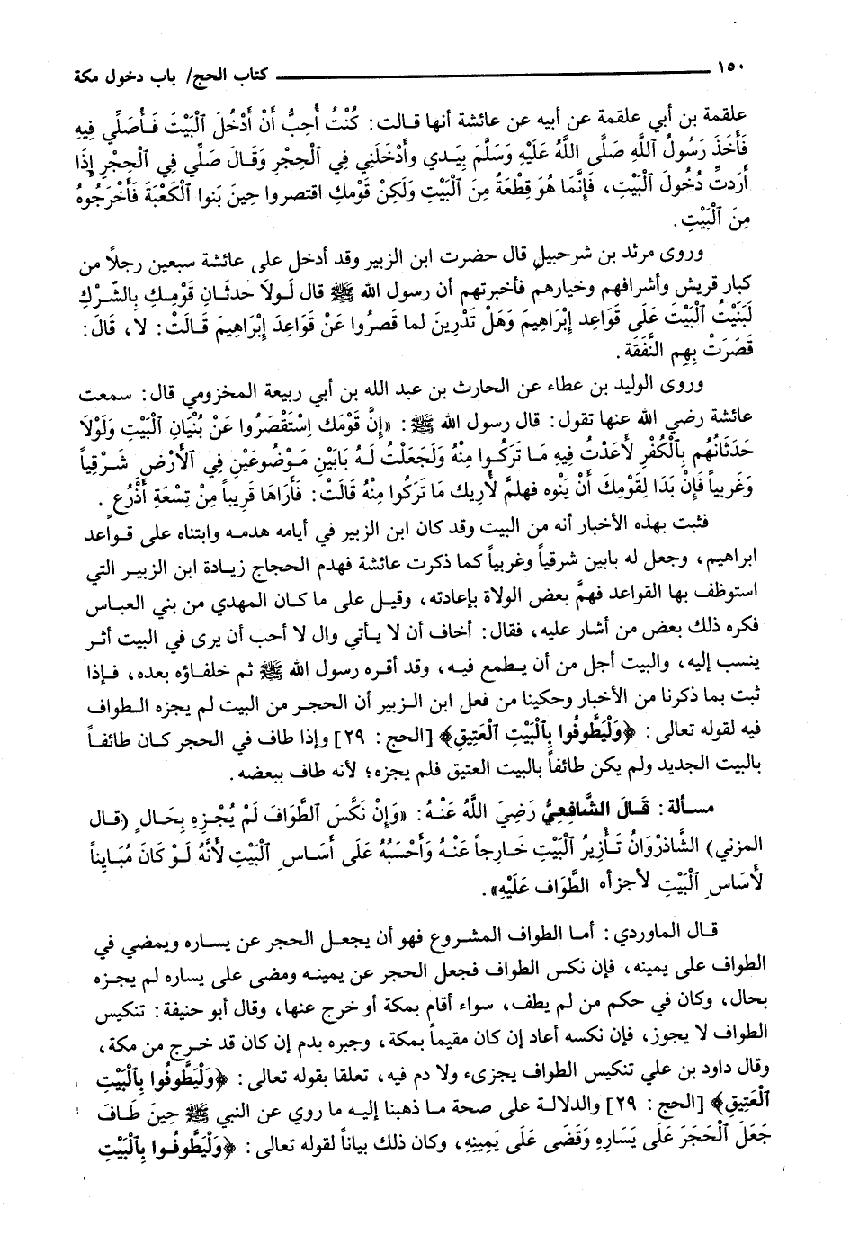 : قال الشافعي رضي الله عنه: " وَإِنْ نَكَّسَ الطَّوَافَ لَمْ يُجْزِهِ بِحَالٍ (قَالَ المزني) الشاذروان تأزير البيت خارجاً عنه وأحسبه على أساس البيت لأنه لو كان مبايناً لأساس البيت لأجزأه الطواف عليه ".