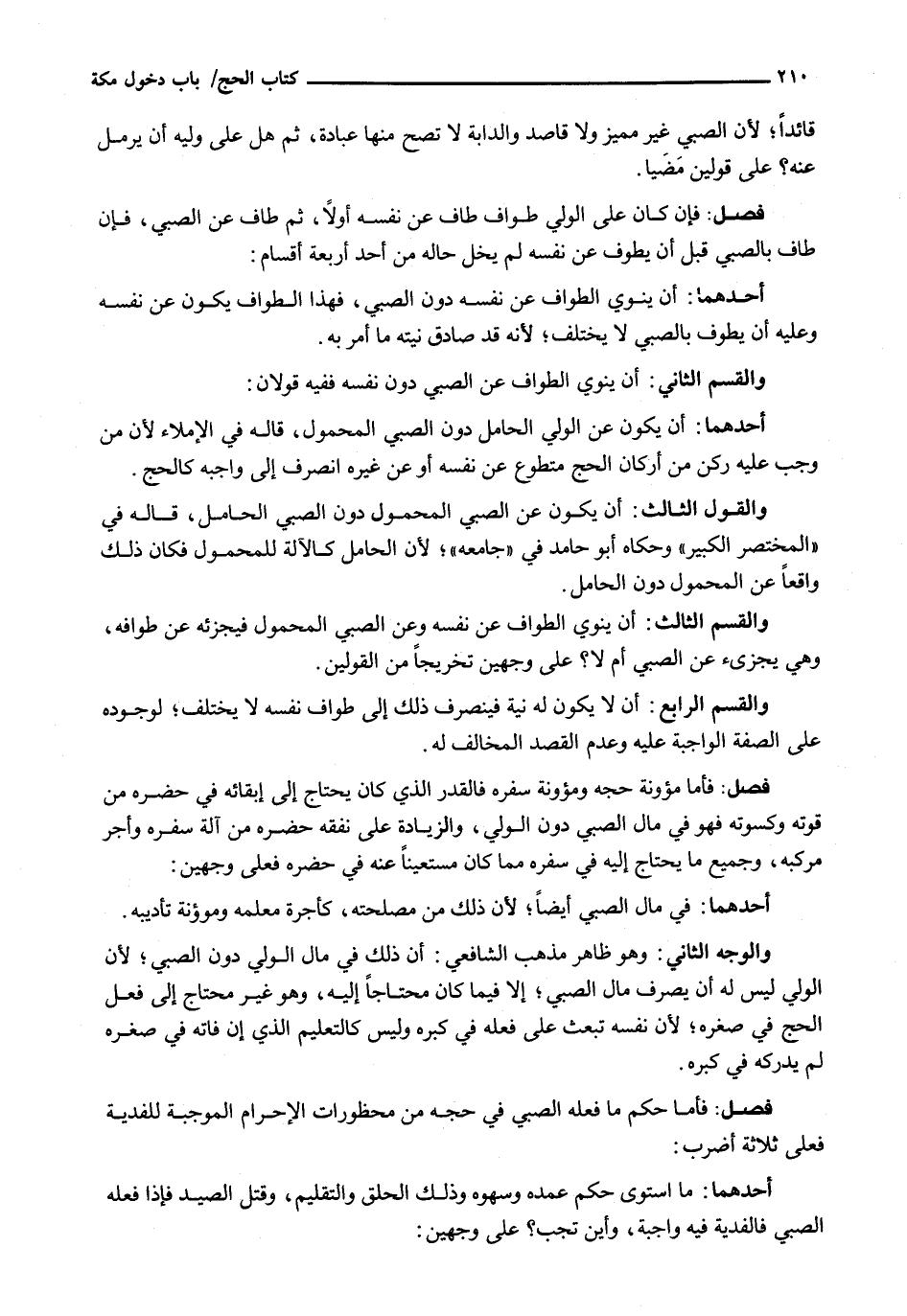: فَإِنْ كَانَ عَلَى الْوَلِيِّ طَوَافٌ طَافَ عَنْ نَفْسِهِ أَوَّلًا، ثُمَّ طَافَ عَنِ الصَّبِيِّ، فَإِنْ طَافَ بِالصَّبِيِّ قَبْلَ أَنْ يَطُوفَ عَنْ نَفْسِهِ لَمْ يَخْلُ حَالُهُ مِنْ أَحَدِ أربعة أقسام: