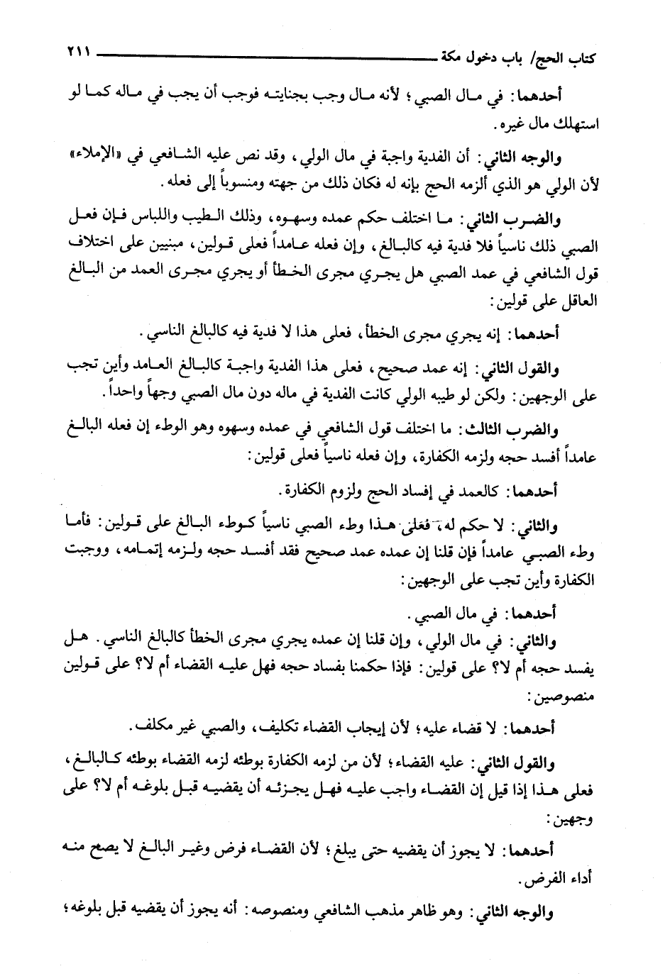 وَالثَّانِي: لَا حُكْمَ لَهُ، فَعَلَى هَذَا وَطْءُ الصَّبِيِّ نَاسِيًا كَوَطْءِ الْبَالِغِ عَلَى قَوْلَيْنِ: فَأَمَّا وَطْءُ الصَّبِيِّ عَامِدًا فَإِنْ قُلْنَا إِنَّ عَمْدَهُ عَمْدٌ صَحِيحٌ فَقَدْ أَفْسَدَ حَجَّهُ وَلَزِمَهُ إِتْمَامُهُ، وَوَجَبَتِ الْكَفَّارَةُ وَأَيْنَ تَجِبُ عَلَى الْوَجْهَيْنِ: