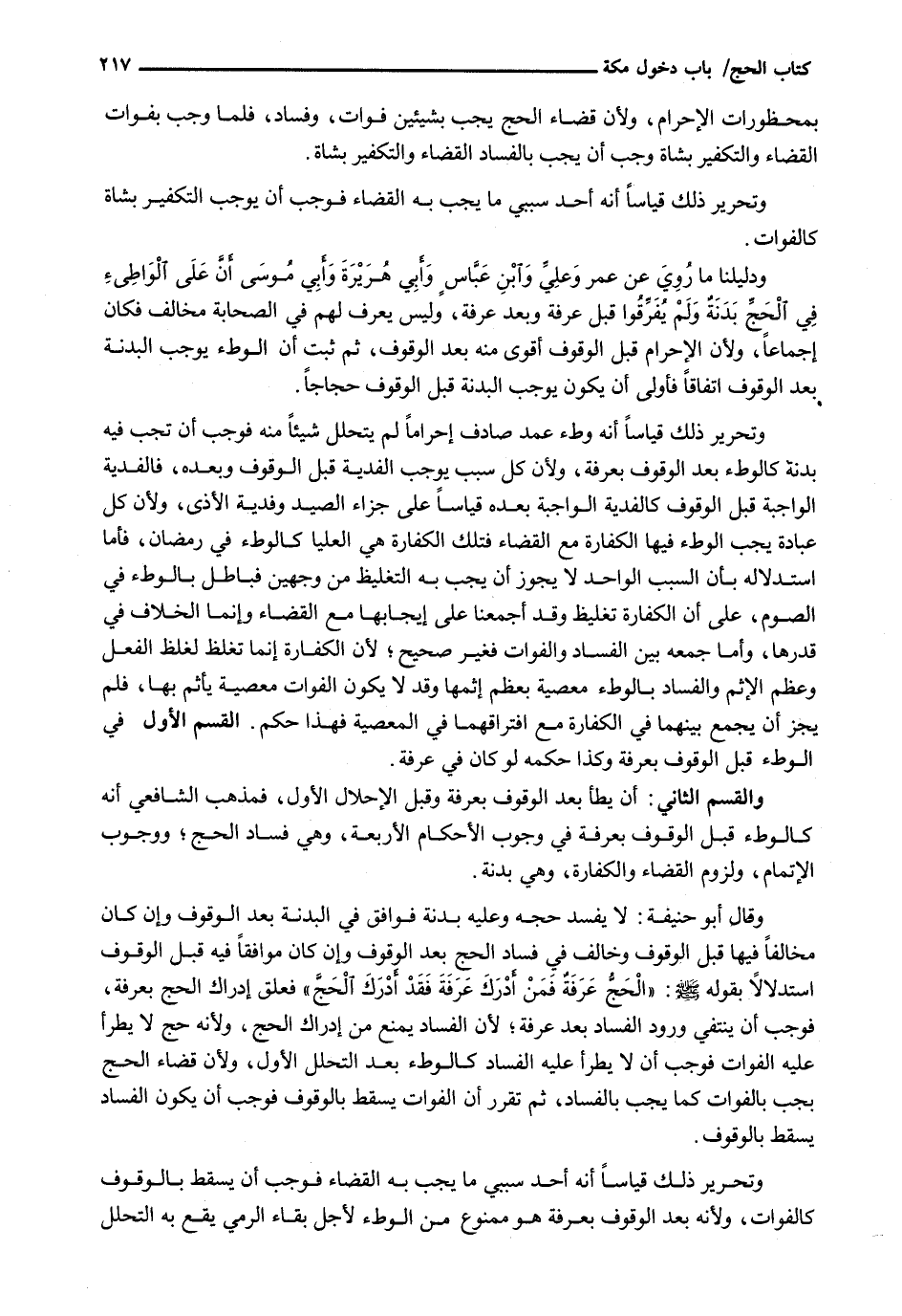وَتَحْرِيرُ ذَلِكَ قياساً أن أَحَدُ سَبَبَيْ مَا يَجِبُ بِهِ الْقَضَاءُ فَوَجَبَ أَنْ يَسْقُطَ بِالْوُقُوفِ كَالْفَوَاتِ، وَلِأَنَّهُ بَعْدَ الْوُقُوفِ بِعَرَفَةَ هُوَ مَمْنُوعٌ مِنَ الْوَطْءِ لِأَجْلِ بَقَاءِ الرَّمْيِ يَقَعُ بِهِ التَّحَلُّلُ