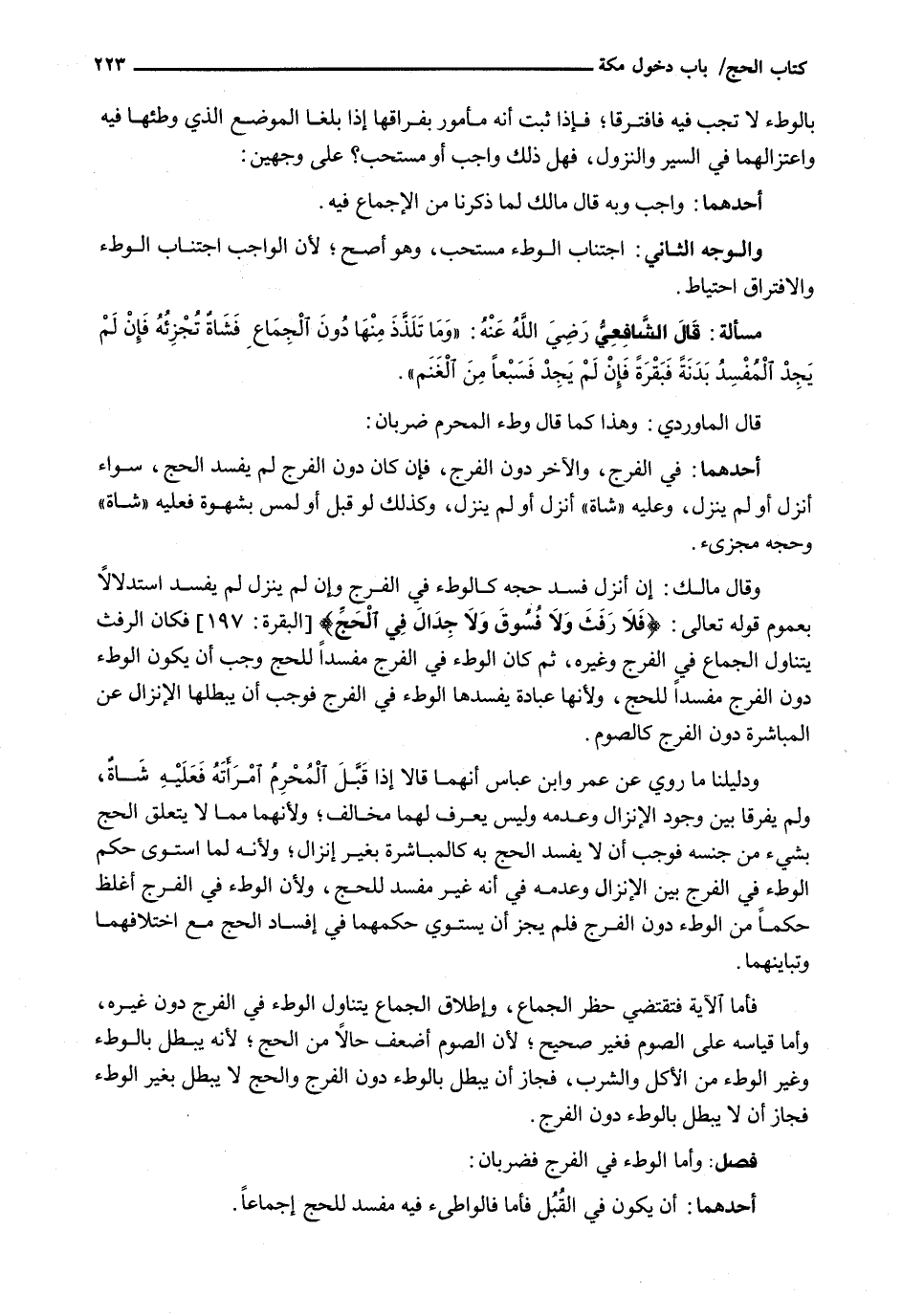 : وَأَمَّا الْوَطْءُ فِي الْفَرْجِ فَضَرْبَانِ: