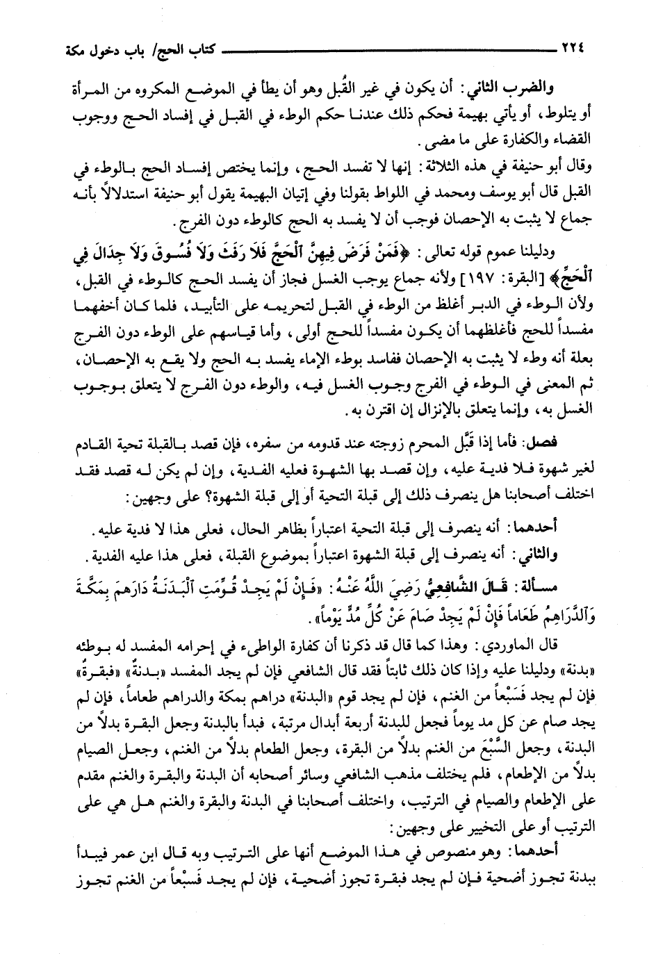 وَالضَّرْبُ الثَّانِي: أَنْ يَكُونَ فِي غَيْرِ الْقُبُلِ وَهُوَ أَنْ يَطَأَ فِي الْمَوْضِعِ الْمَكْرُوهِ مِنَ الْمَرْأَةِ أَوْ يَتَلَوَّطَ، أَوْ يَأْتِيَ بَهِيمَةً فَحُكْمُ ذَلِكَ عِنْدَنَا حُكْمُ الْوَطْءِ فِي الْقُبُلِ فِي إِفْسَادِ الْحَجِّ وَوُجُوبِ الْقَضَاءِ وَالْكَفَّارَةِ عَلَى مَا مَضَى.