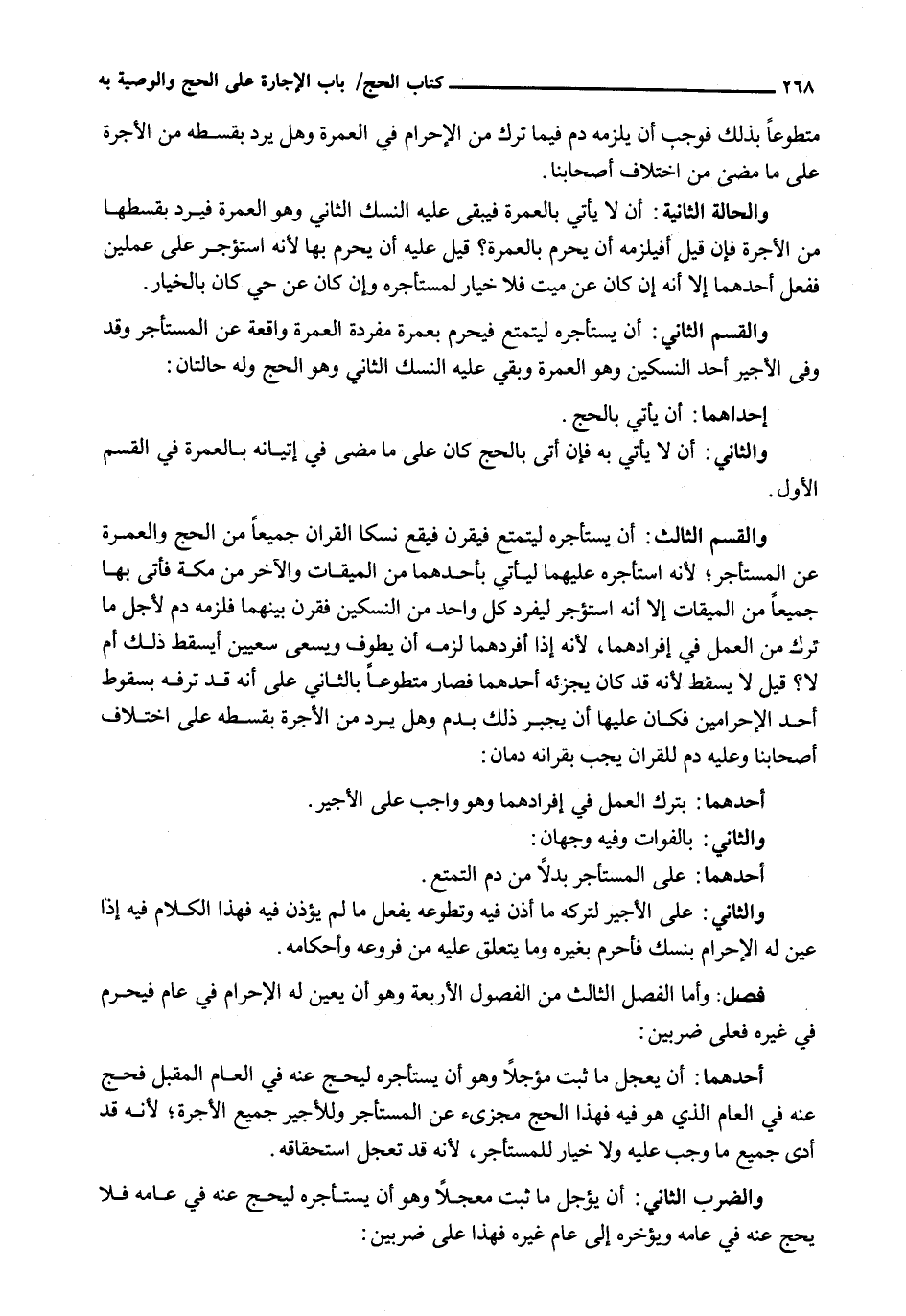 : وَأَمَّا الْفَصْلُ الثَّالِثُ مِنَ الْفُصُولِ الْأَرْبَعَةِ وَهُوَ أَنْ يُعَيِّنَ لَهُ الْإِحْرَامَ فِي عَامٍ فَيُحْرِمَ فِي غَيْرِهِ فَعَلَى ضَرْبَيْنِ: