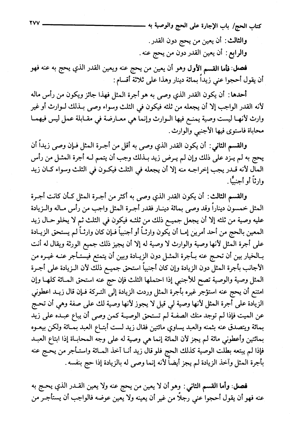 وَالْقِسْمُ الثَّانِي: أَنْ يَكُونَ الْقَدْرُ الَّذِي وَصَّى بِهِ أَقَلَّ مِنْ أُجْرَةِ الْمِثْلِ فَإِنْ وَصَّى زَيْدًا أَنْ يَحُجَّ بِهِ لَمْ يَزِدْ عَلَى ذَلِكَ وَإِنْ لَمْ يَرْضَ زَيْدٌ بِذَلِكَ وَجَبَ أَنْ يُتَمِّمَ لَهُ أُجْرَةَ الْمِثْلِ مِنْ رَأْسِ الْمَالِ لِأَنَّهُ قَدْرٌ يَجِبُ إِخْرَاجُهُ مِنْهُ إِلَّا أَنْ يَجْعَلَهُ فِي الثُّلُثِ فَيَكُونَ فِي الثُّلُثِ وَسَوَاءٌ كَانَ زَيْدٌ وَارِثًا أَوْ أَجْنَبِيًّا.