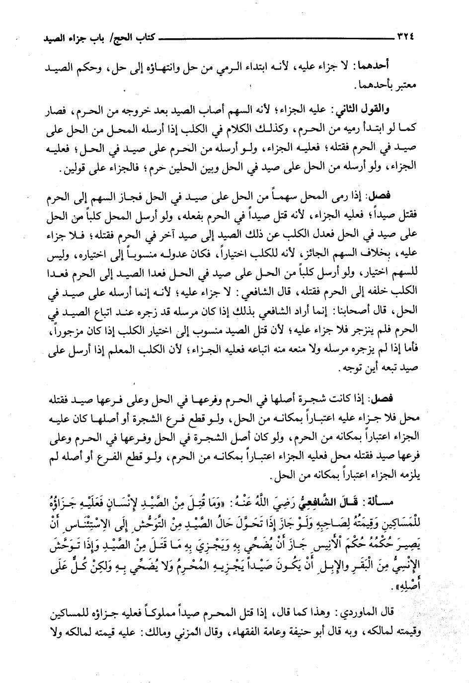 : إِذَا رَمَى الْمُحِلُّ سَهْمًا مِنَ الْحِلِّ عَلَى صَيْدٍ فِي الْحِلِّ فَجَازَ السَّهْمُ إِلَى الْحَرَمِ فَقَتَلَ صَيْدًا؛ فَعَلَيْهِ الْجَزَاءُ، لِأَنَّهُ قَتَلَ صَيْدًا فِي الْحَرَمِ بِفِعْلِهِ، وَلَوْ أَرْسَلَ الْمُحِلُّ كَلْبًا مِنَ الْحِلِّ عَلَى صَيْدٍ فِي الْحِلِّ فَعَدَلَ الْكَلْبُ عَنْ ذَلِكَ الصَّيْدِ إِلَى صَيْدٍ آخَرَ فِي الْحَرَمِ فَقَتَلَهُ؛ فَلَا جَزَاءَ عَلَيْهِ، بِخِلَافِ السَّهْمِ الجائز، لأنه لِلْكَلْبِ اخْتِيَارًا، فَكَانَ عُدُولُهُ مَنْسُوبًا إِلَى اخْتِيَارِهِ، وَلَيْسَ لِلسَّهْمِ اخْتِيَارٌ، وَلَوْ أَرْسَلَ كَلْبًا مِنَ الْحِلِّ عَلَى صَيْدٍ فِي الْحِلِّ فَعَدَا الصَّيْدُ إِلَى الْحَرَمِ فَعَدَا الْكَلْبُ خَلْفَهُ إِلَى الْحَرَمِ فَقَتَلَهُ، قَالَ الشَّافِعِيُّ: لَا جَزَاءَ عَلَيْهِ؛ لِأَنَّهُ إِنَّمَا أَرْسَلَهُ عَلَى صَيْدٍ فِي الْحِلِّ، قَالَ أَصْحَابُنَا: إِنَّمَا أَرَادَ الشَّافِعِيُّ بِذَلِكَ إِذَا كَانَ مُرْسِلُهُ قَدْ زَجَرَهُ عِنْدَ اتِّبَاعِ الصَّيْدِ فِي الْحَرَمِ فَلَمْ يَنْزَجِرْ فَلَا جَزَاءَ عَلَيْهِ؛ لِأَنَّ قَتْلَ الصَّيْدِ مَنْسُوبٌ إِلَى اخْتِيَارِ الْكَلْبِ إِذَا كَانَ مَزْجُورًا، فَأَمَّا إِذَا لَمْ يَزْجُرْهُ مُرْسِلُهُ ولا منعه منه اتِّبَاعِهِ فَعَلَيْهِ الْجَزَاءُ؛ لِأَنَّ الْكَلْبَ الْمُعَلَّمَ إِذَا أُرْسِلَ عَلَى صَيْدٍ تَبِعَهُ أَيْنَ تَوَجَّهَ.
