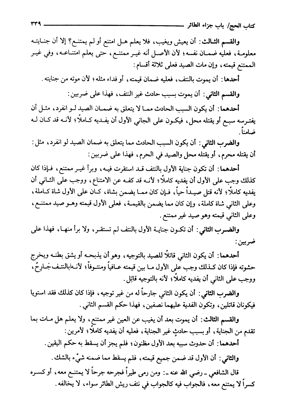 قال الشافعي - رضي الله عنه -: وَمَنْ رَمَى طَيْرًا فَجَرَحَهُ جُرْحًا لَا يَمْتَنِعُ مَعَهُ، أَوْ كَسَرَهُ كَسْرًا لَا يَمْتَنِعُ مَعَهُ، فَالْجَوَابُ فِيهِ كَالْجَوَابِ فِي نَتْفِ رِيشِ الطَّائِرِ سَوَاءٌ، لَا يُخَالِفُهُ.
