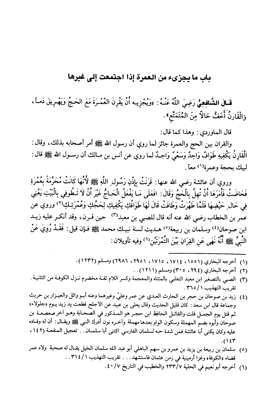 قال الشافعي رضي الله عنه: " وَيُجْزِيهِ أَنْ يَقْرِنَ الْعُمْرَةَ مَعَ الْحَجِّ وَيُهْرِيقَ دماً، والقارن أَخَفُّ حَالًا مِنَ الْمُتَمَتِّعِ ".