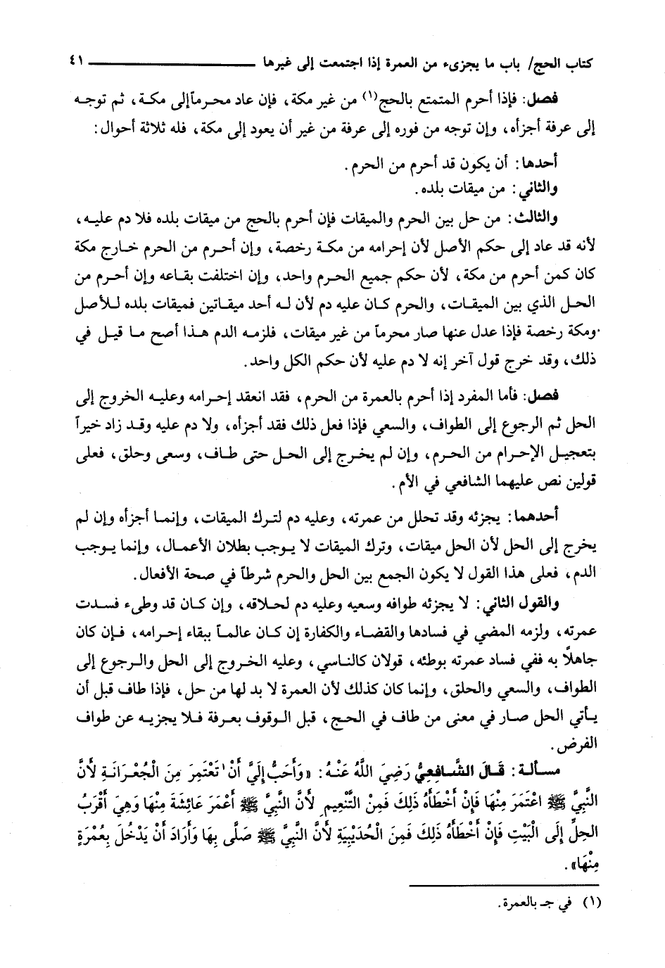 : فَأَمَّا الْمُفْرِدُ إِذَا أَحْرَمَ بِالْعُمْرَةِ مِنَ الْحَرَمِ، فَقَدِ انْعَقَدَ إِحْرَامُهُ وَعَلَيْهِ الْخُرُوجُ إِلَى الْحِلِّ ثُمَّ الرُّجُوعُ إِلَى الطَّوَافِ، وَالسَّعْيِ فَإِذَا فَعَلَ ذَلِكَ فَقَدْ أَجْزَأَهُ، وَلَا دَمَ عَلَيْهِ وَقَدْ زَادَ خَيْرًا بِتَعْجِيلِ الْإِحْرَامِ مِنَ الْحَرَمِ، وَإِنْ لَمْ يَخْرُجْ إِلَى الْحِلِّ حَتَّى طَافَ، وَسَعَى وَحَلَقَ، فَعَلَى قَوْلَيْنِ نَصَّ عَلَيْهِمَا الشَّافِعِيُّ فِي الْأُمِّ.