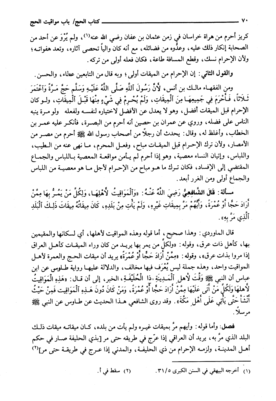 قَالَ الْمَاوَرْدِيُّ: وَهَذَا صَحِيحٌ، أَمَّا قَوْلُهُ وَهَذِهِ الْمَوَاقِيتُ لِأَهْلِهَا، أَيْ لِسُكَّانِهَا وَالْمُقِيمِينَ بِهَا، كَأَهْلِ ذَاتِ عِرْقٍ، وقوله: " ولكل من يمر بِهَا يُرِيدُ مَنْ كَانَ وَرَاءَ الْمِيقَاتِ كَأَهْلِ الْعِرَاقِ إِذَا مَرُّوا بِذَاتِ عِرْقٍ "، وَقَوْلُهُ: " مِمَّنْ أَرَادَ حَجًّا أَوْ عُمْرَةً " يُرِيدُ أَنَّ مِيقَاتَ الْحَجِّ وَالْعُمْرَةِ لِأَهْلِ الْمَوَاقِيتِ وَاحِدٌ، وَهَذِهِ جُمْلَةٌ لَيْسَ يُعرف فِيهَا مُخَالِفٌ، وَالدَّلَالَةُ عَلَيْهَا رِوَايَةُ طَاوُسٌ عَنِ ابْنِ عَبَّاسٍ أَنَّ النَّبِيَّ - صَلَّى اللَّهُ عَلَيْهِ وَسَلَّم َ - وَقَّتَ لِأَهْلِ الْمَدِينَةِ ذَا الْحُلَيْفَةِ، الْخَبَرَ، إِلَى أَنْ قَالَ: " هَذِهِ الْمَوَاقِيتُ لِأَهْلِهَا وَلَكُلِّ مَنْ أَتَى عَلَيْهَا مِمَّنْ أَرَادَ حَجًّا أَوْ عُمْرَةً، وَمَنْ كَانَ دُونَ هَذِهِ الْمَوَاقِيتِ فَمِنْ حَيْثُ أَنْشَأَ حَتَّى يَأْتِيَ عَلَى أَهْلِ مَكَّةَ ". وَقَدْ رَوَى الشَّافِعِيُّ هَذَا الْحَدِيثَ عَنْ طَاوُسٍ عَنِ النَّبِيِّ - صَلَّى اللَّهُ عَلَيْهِ وَسَلَّم َ - مُرْسَلًا.