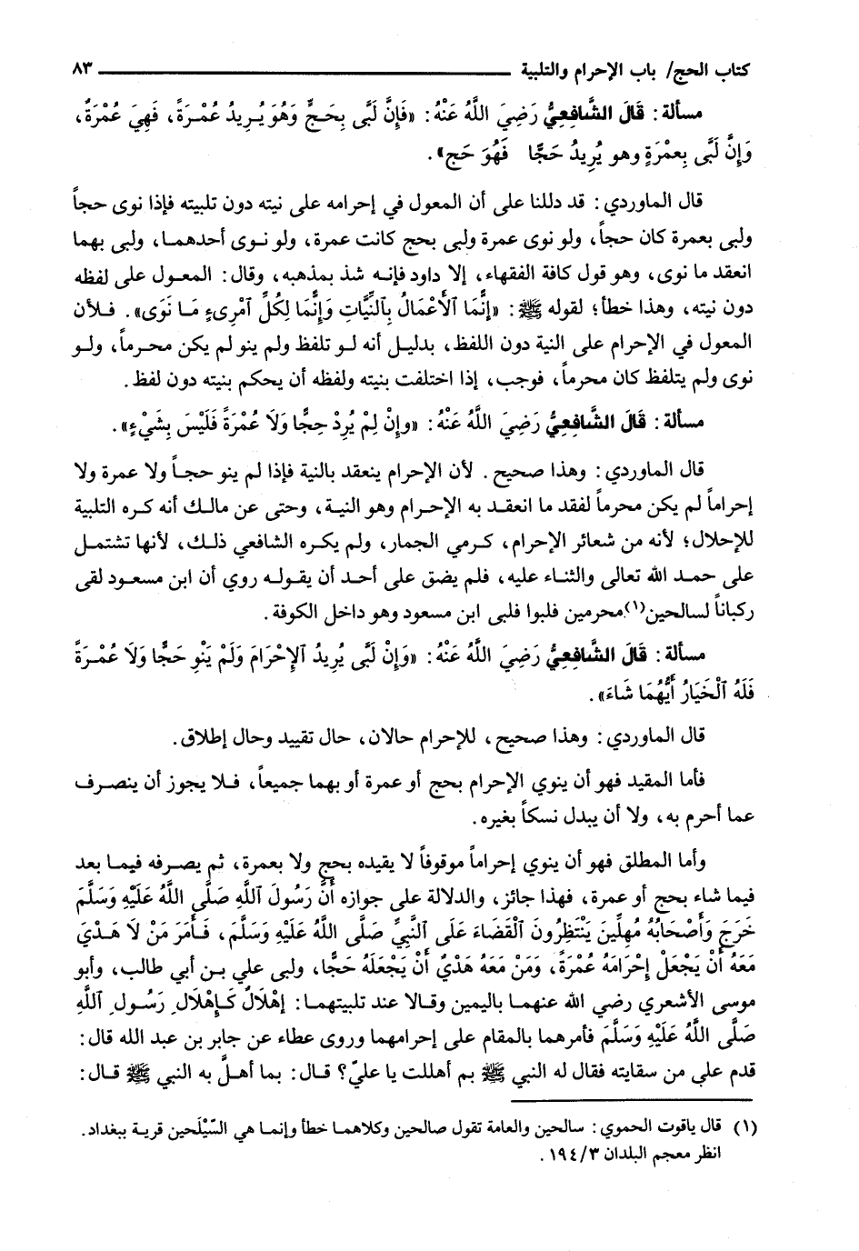 قَالَ الْمَاوَرْدِيُّ: وَهَذَا صَحِيحٌ، لِلْإِحْرَامِ حَالَانِ، حَالُ تَقْيِيدٍ وَحَالُ إِطْلَاقٍ.