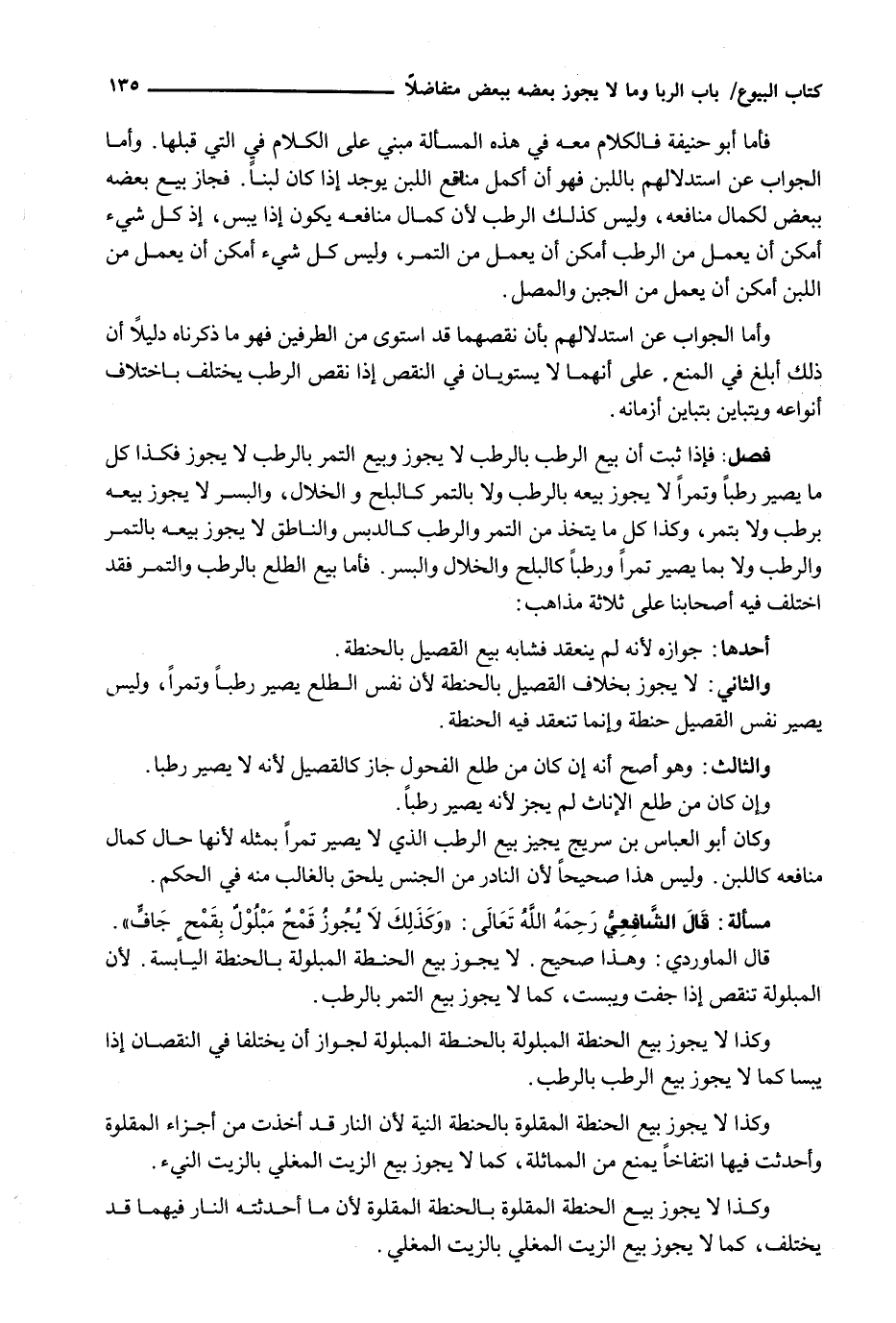 وَأَمَّا الْجَوَابُ عَنِ اسْتِدْلَالِهِمْ بِأَنَّ نَقْصَهُمَا قَدِ اسْتَوَى مِنَ الطَّرَفَيْنِ فَهُوَ مَا ذَكَرْنَاهُ دَلِيلًا أَنَّ ذَلِكَ أَبْلَغُ فِي الْمَنْعِ. عَلَى أَنَّهُمَا لَا يَسْتَوِيَانِ فِي النَّقْصِ إِذَا نَقَصَ الرُّطَبُ يَخْتَلِفُ بِاخْتِلَافِ أَنْوَاعِهِ وَيَتَبَايَنُ بِتَبَايُنِ أَزْمَانِهِ.