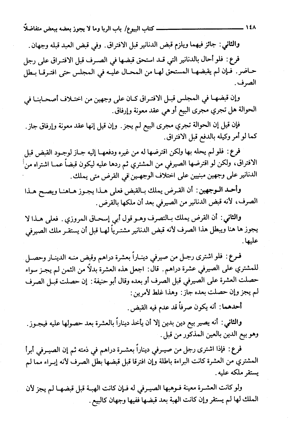 وَالثَّانِي: أَنَّ الْقَرْضَ يُمْلَكُ بِالتَّصَرُّفِ وَهُوَ قَوْلُ أَبِي إِسْحَاقَ المروزي. فعلى هذا لا يجوز ها هنا وَيَبْطُلُ هَذَا الصَّرْفُ لِأَنَّهُ قَبَضَ الدَّنَانِيرَ مُشْتَرِيًا لَهَا قَبْلَ أَنْ يَسْتَقِرَّ مِلْكُ الصَّيْرَفِيِّ عَلَيْهَا.